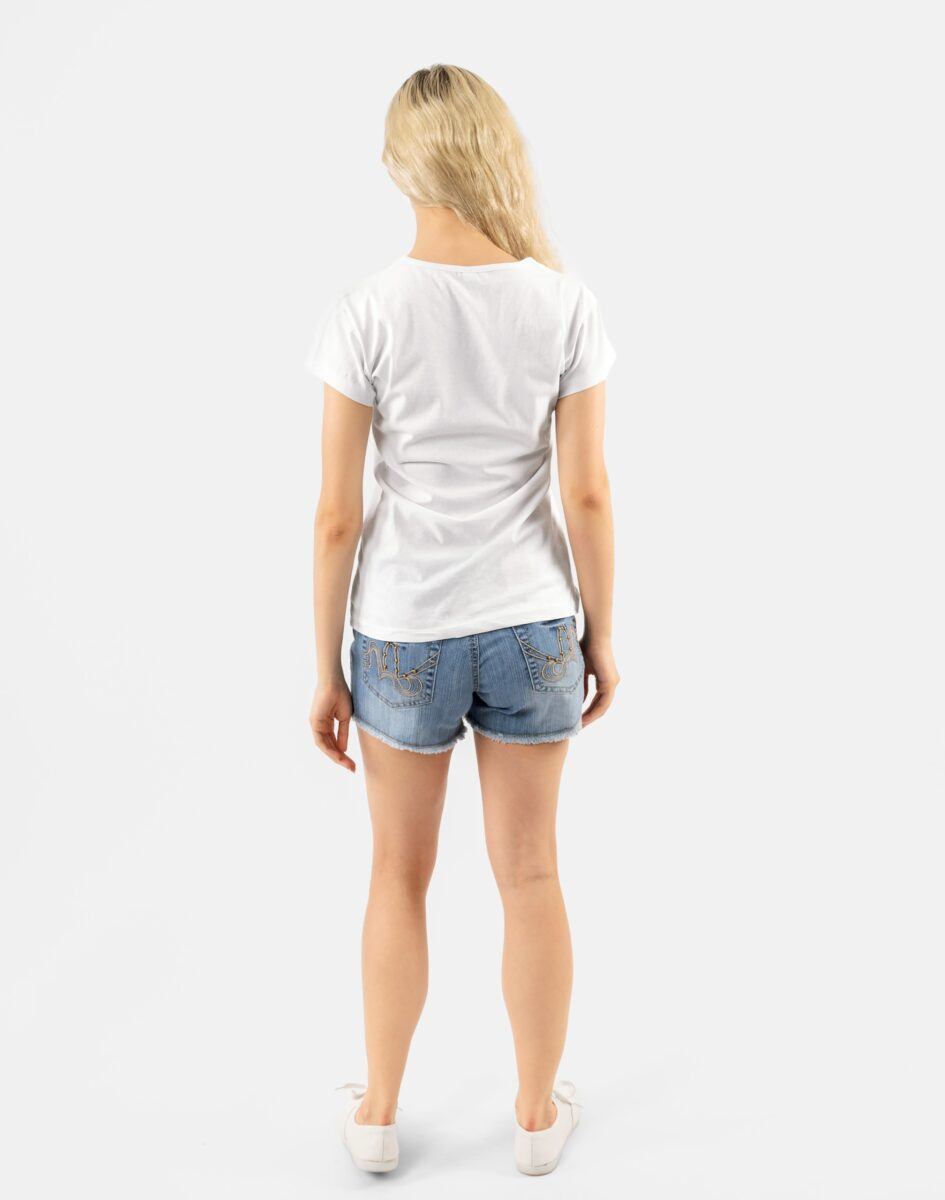 Komfortowa bluzka damska do codziennego użytku z krótkim rękawem i okrągłym dekoltem. Z przodu naniesiony trwałym termonadrukiem firmowy wzór w nowoczesnym designie. Tył gładki, jednolity. Wykonana z naturalnej, miękkiej, ekologicznej bawełny z dodatkiem poliestru, o gramaturze 140g/m2 zapewniającej maksymalną wygodę i komfort użytkowania. Odpowiedni krój koszulki nie ogranicza swobody ruchów a niewielka gramatura pozytywnie wpływa na komfort użytkowania w ciepłe i gorące dni wiosny i lata. Zapewni Ci atrakcyjny modny wygląd i jednocześnie sportowy charakter!
