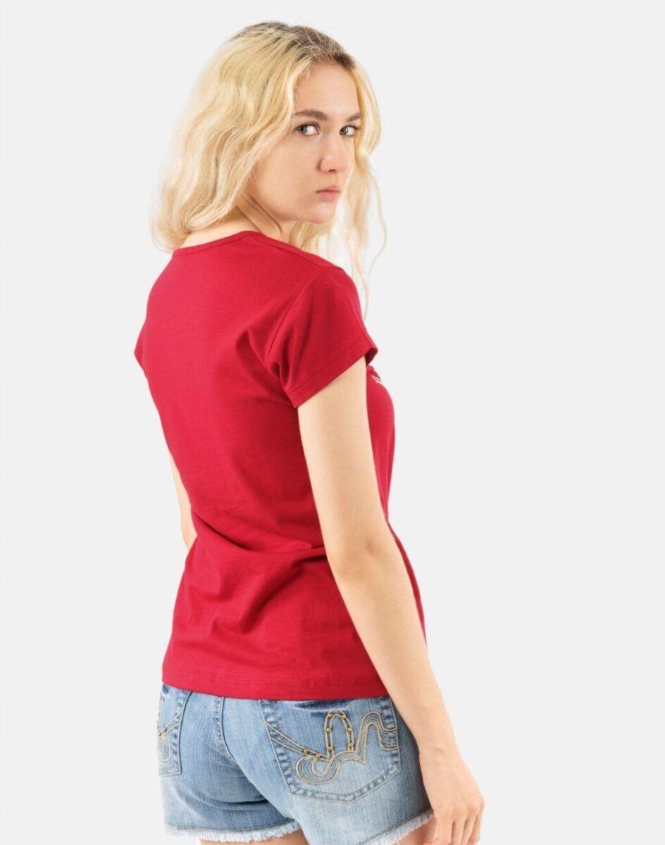 Komfortowa bluzka damska do codziennego użytku z krótkim rękawem i okrągłym dekoltem. Z przodu naniesiony trwałym termonadrukiem firmowy wzór w nowoczesnym designie. Tył gładki, jednolity. Wykonana z naturalnej, miękkiej, ekologicznej bawełny z dodatkiem poliestru, o gramaturze 140g/m2 zapewniającej maksymalną wygodę i komfort użytkowania. Odpowiedni krój koszulki nie ogranicza swobody ruchów a niewielka gramatura pozytywnie wpływa na komfort użytkowania w ciepłe i gorące dni wiosny i lata. Zapewni Ci atrakcyjny modny wygląd i jednocześnie sportowy charakter!