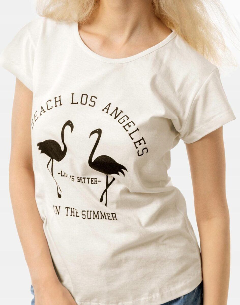 Koszulka Bluzka Damska Bawełniana z efektownym nadrukiem