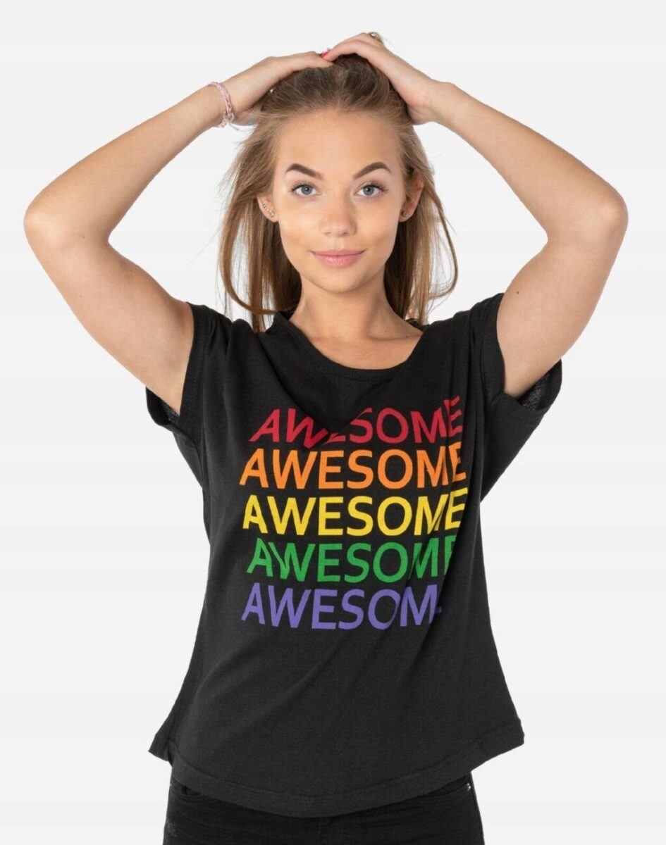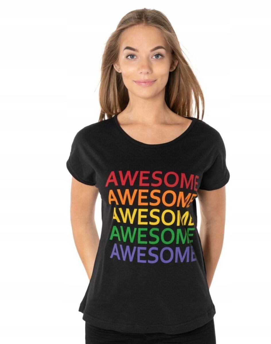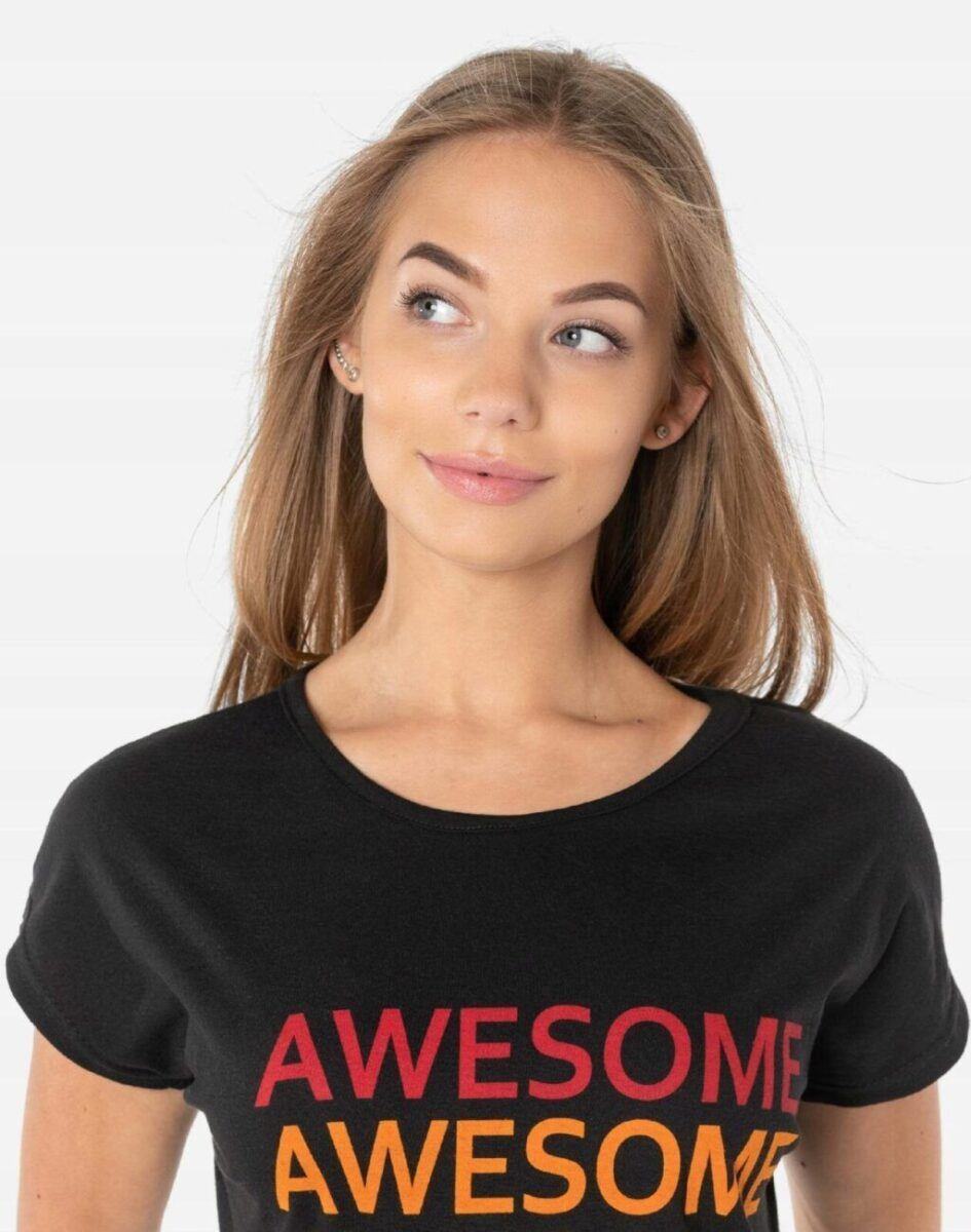 Koszulka Bluzka Damska Bawełniana z efektownym nadrukiem „Awesome”