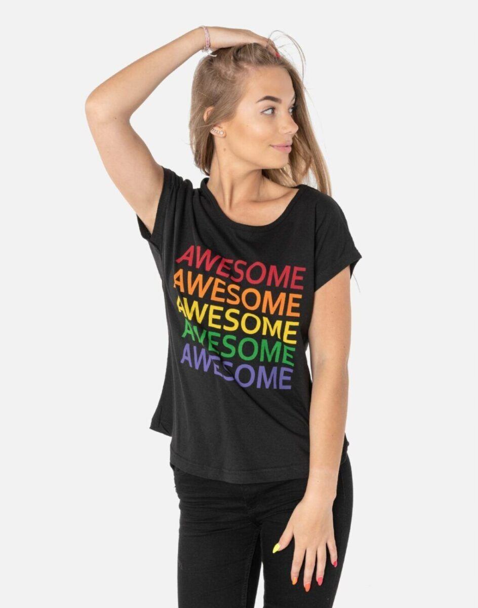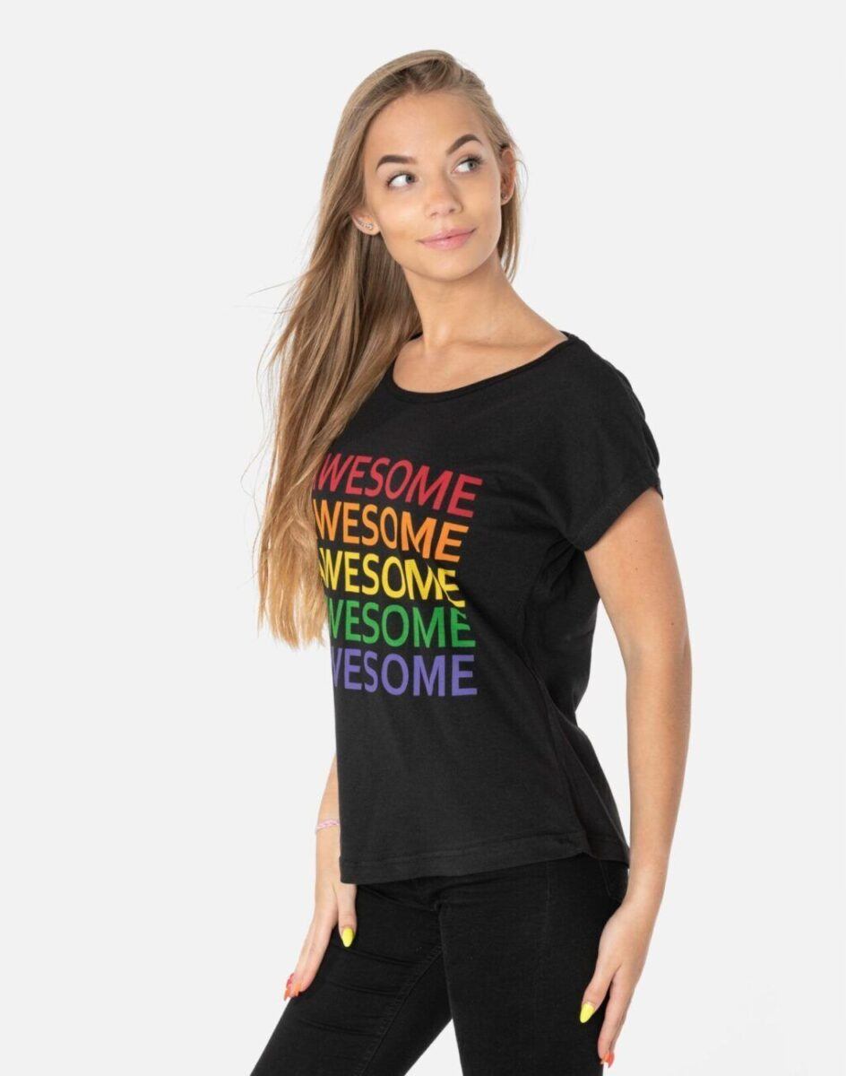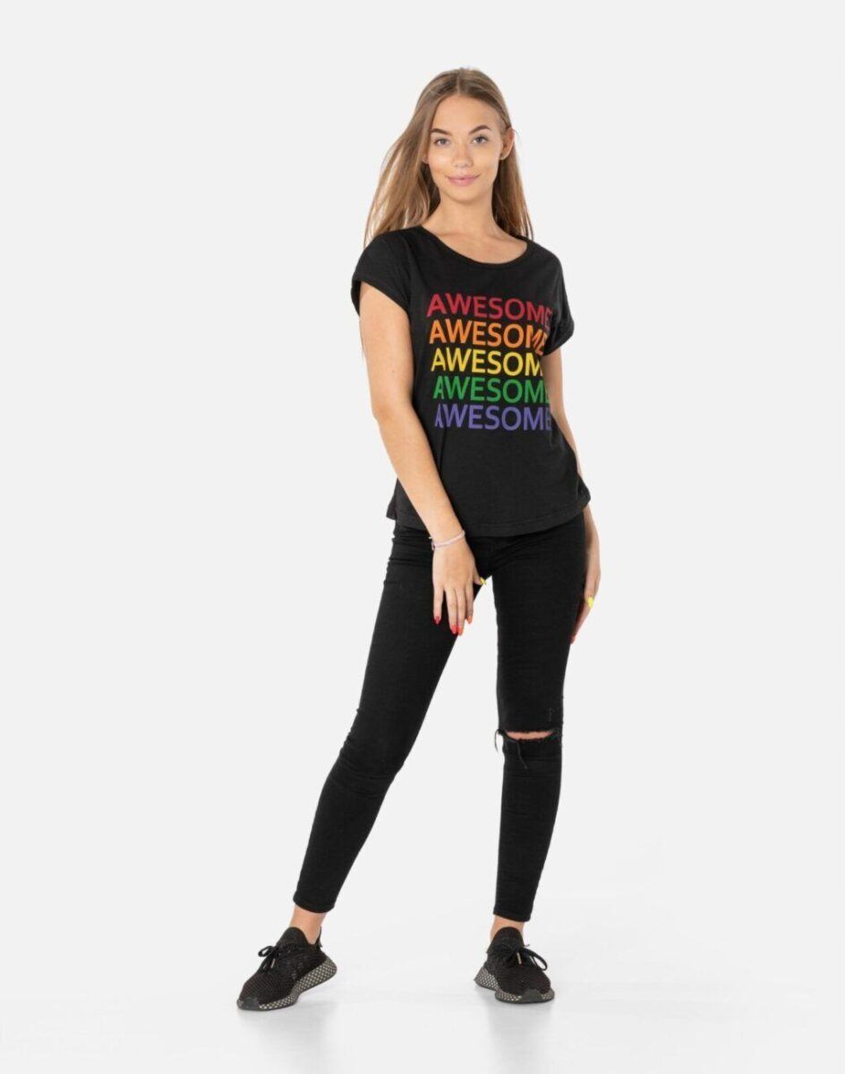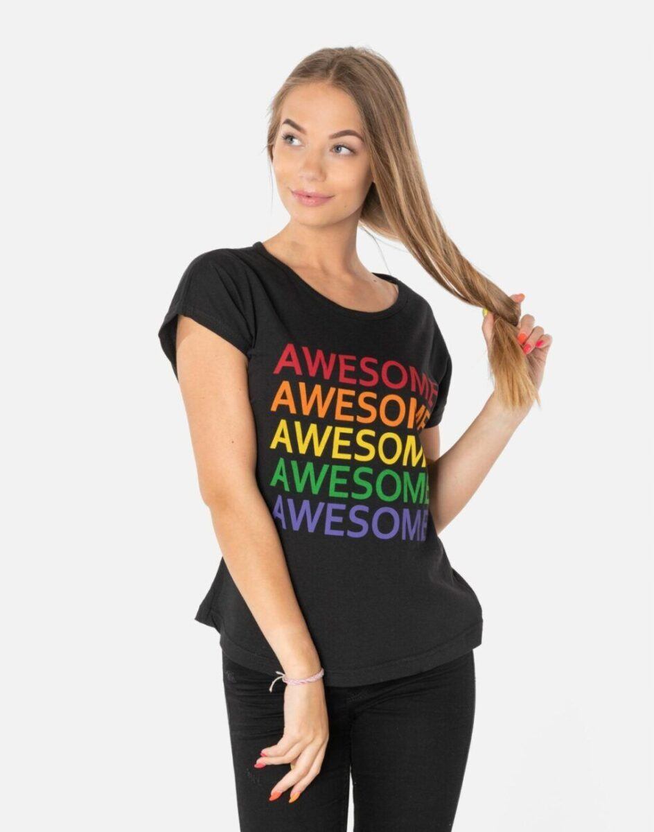 Koszulka Bluzka Damska Bawełniana z efektownym nadrukiem „Awesome”