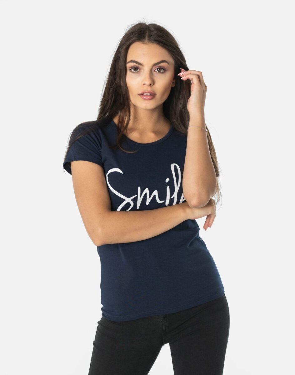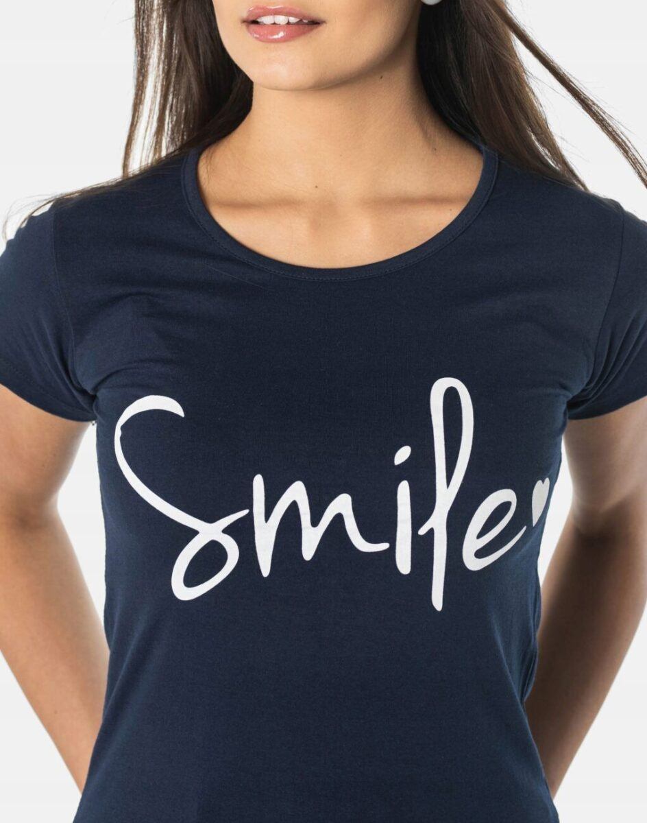 Koszulka Bluzka Damska Bawełniana z Krótkim Rękawem i Efektownym Nadrukiem