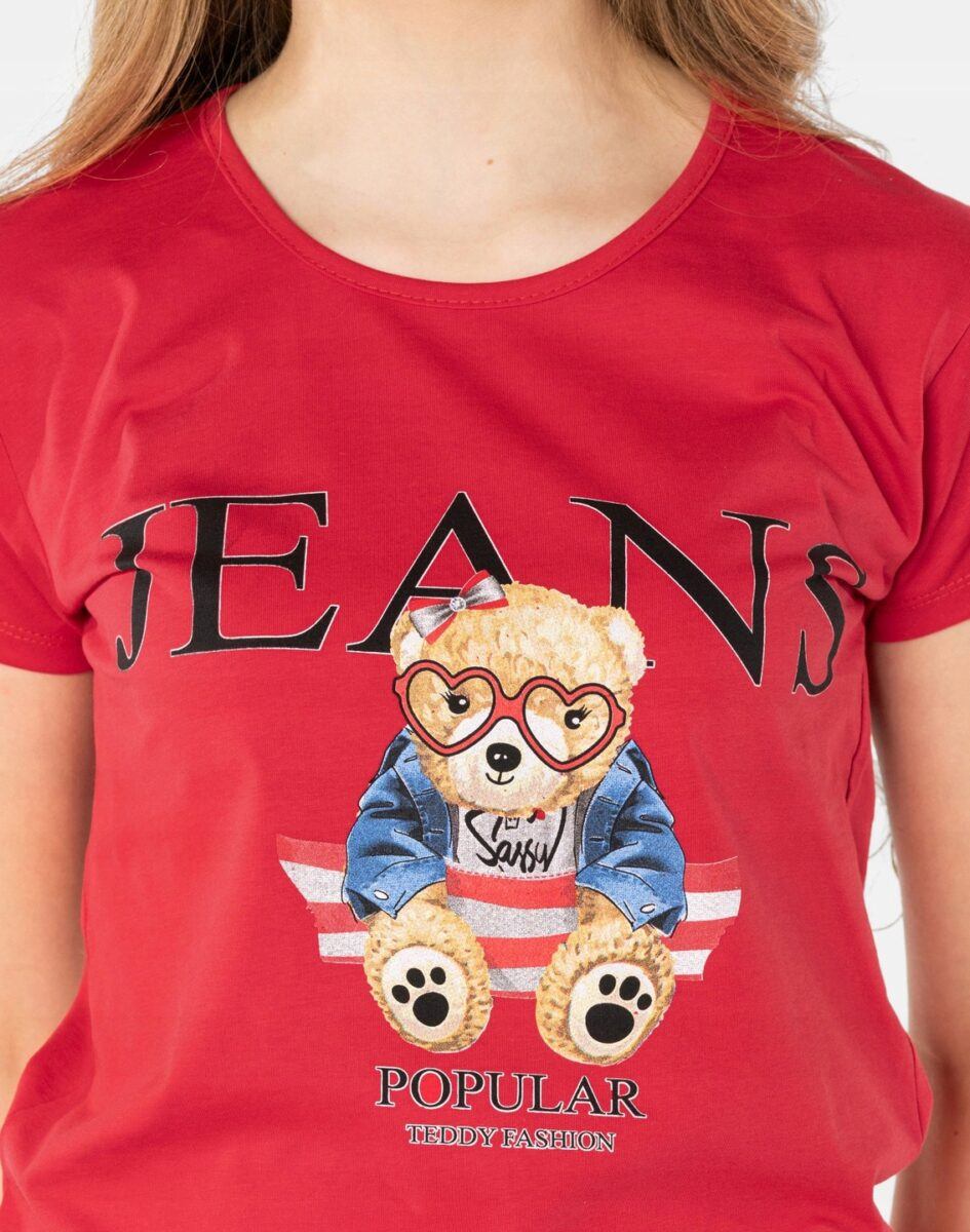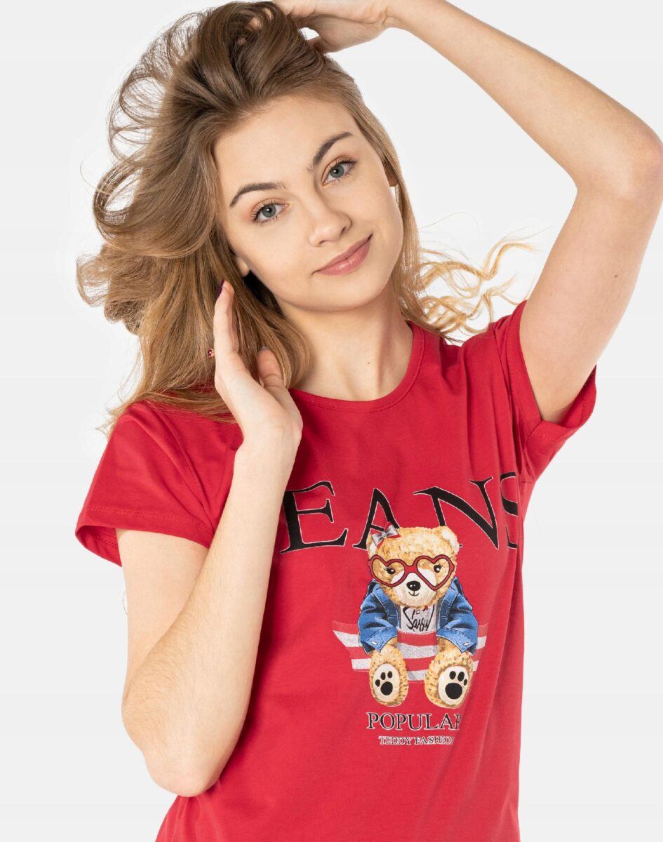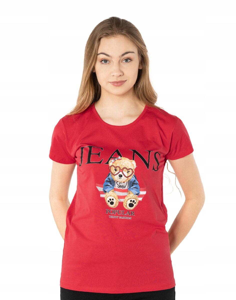 Koszulka Bluzka Damska Bawełniana z efektownym nadrukiem „Teddy Fashion Jeans”