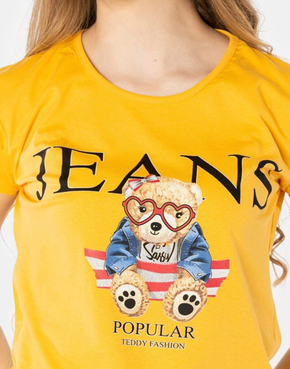 Koszulka Bluzka Damska Bawełniana z efektownym nadrukiem „Teddy Fashion Jeans”