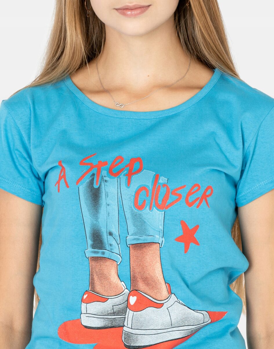 Koszulka Bluzka Damska Bawełniana z efektownym nadrukiem "A step closer to happiness"