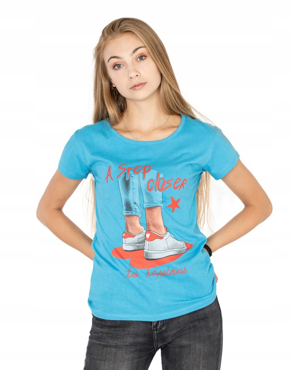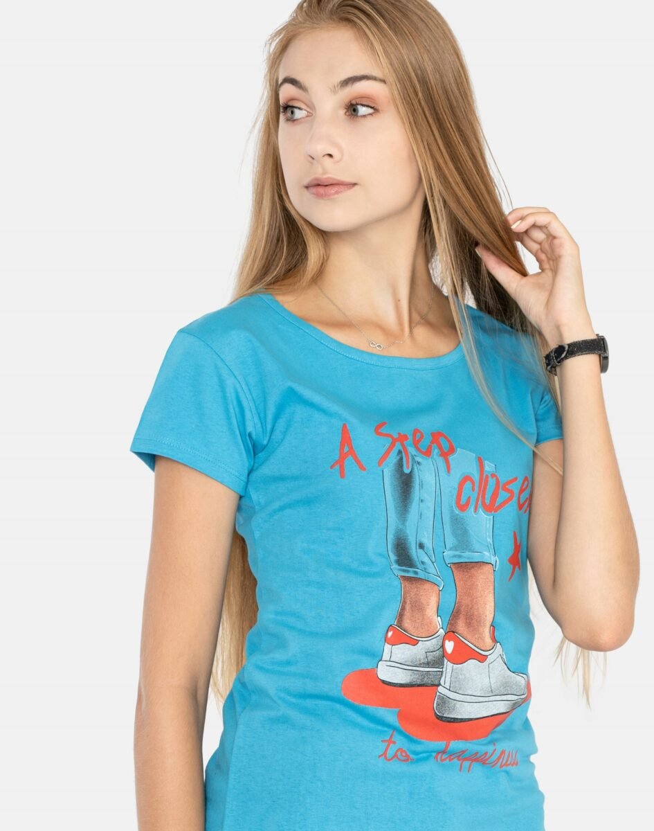 Koszulka Bluzka Damska Bawełniana z efektownym nadrukiem "A step closer to happiness"
