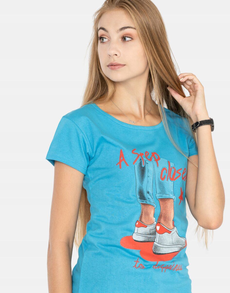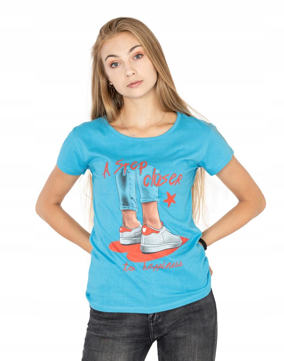 Koszulka Bluzka Damska Bawełniana z efektownym nadrukiem „A step closer to happiness”