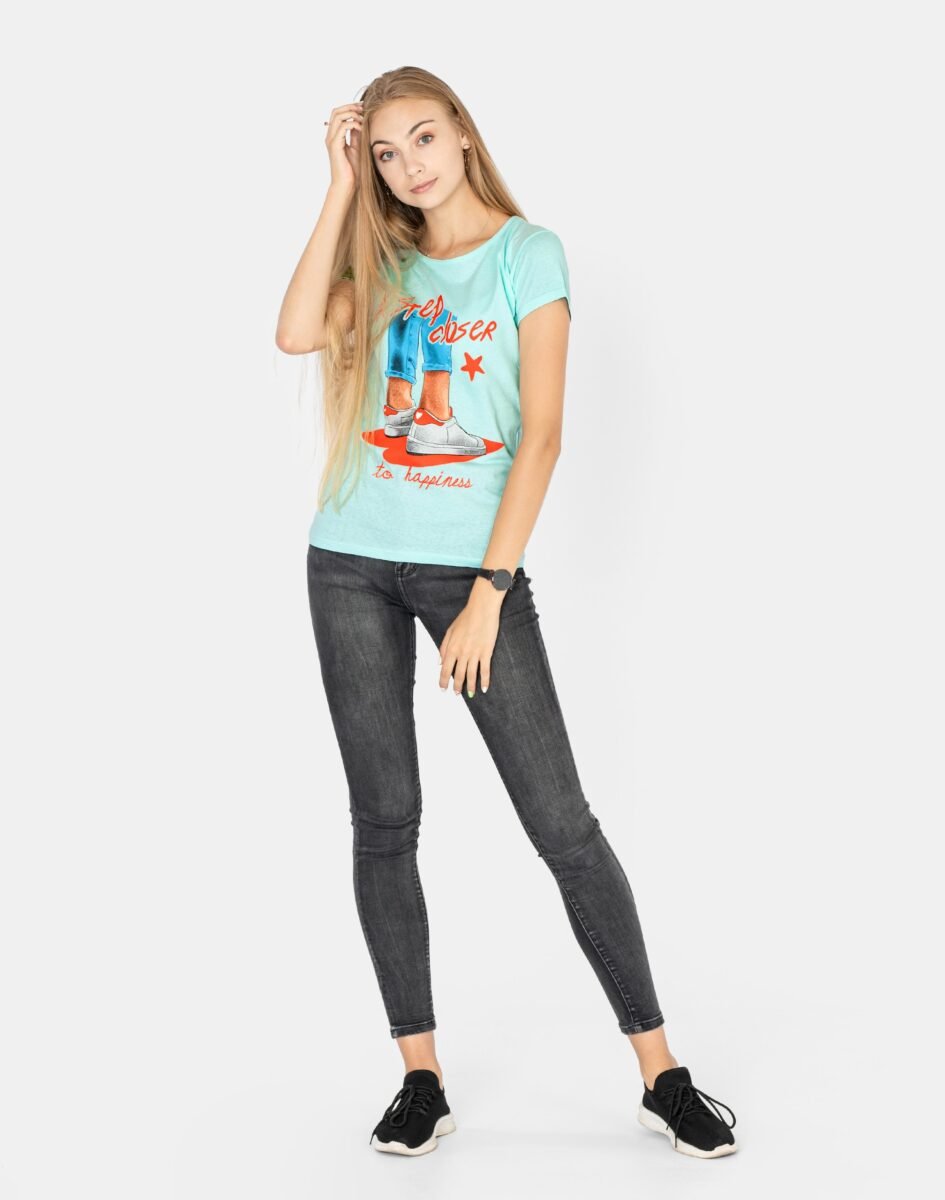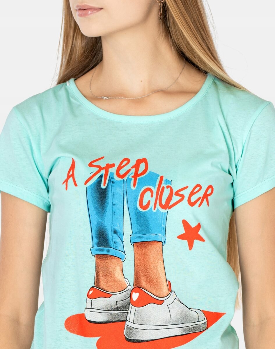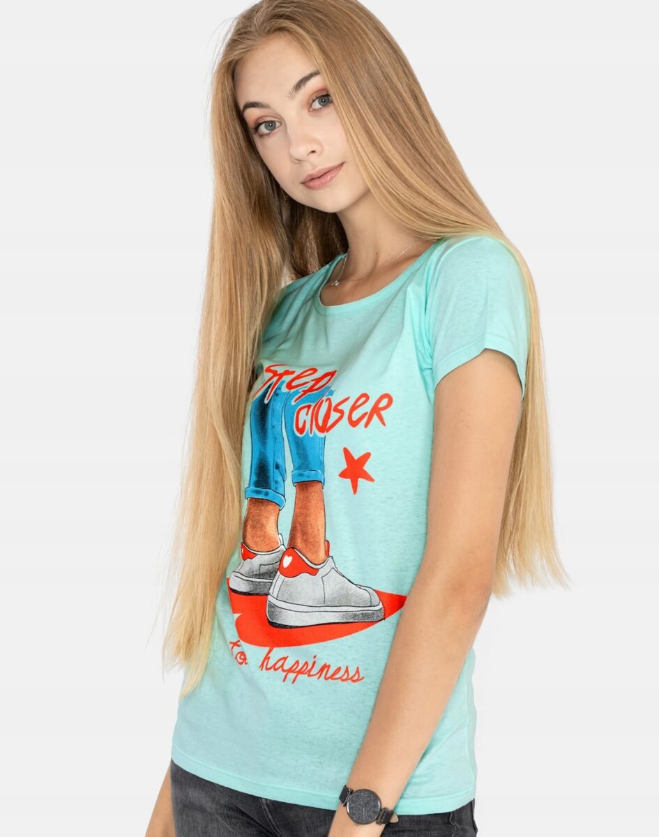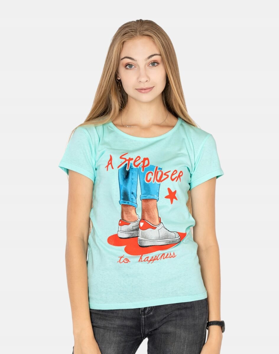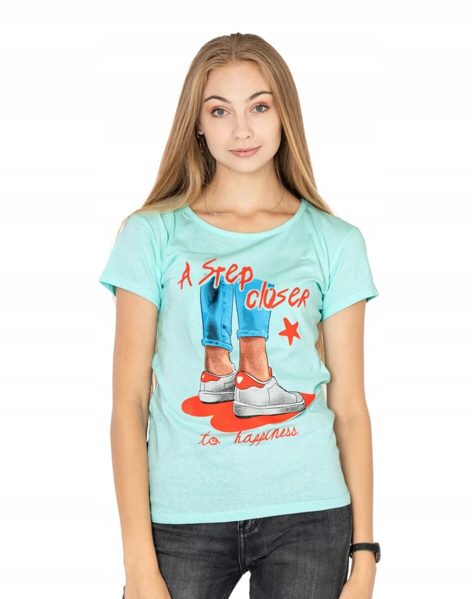Koszulka Bluzka Damska Bawełniana z efektownym nadrukiem "A step closer to happiness"