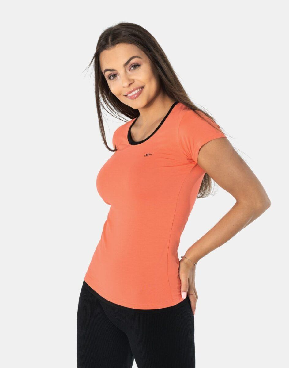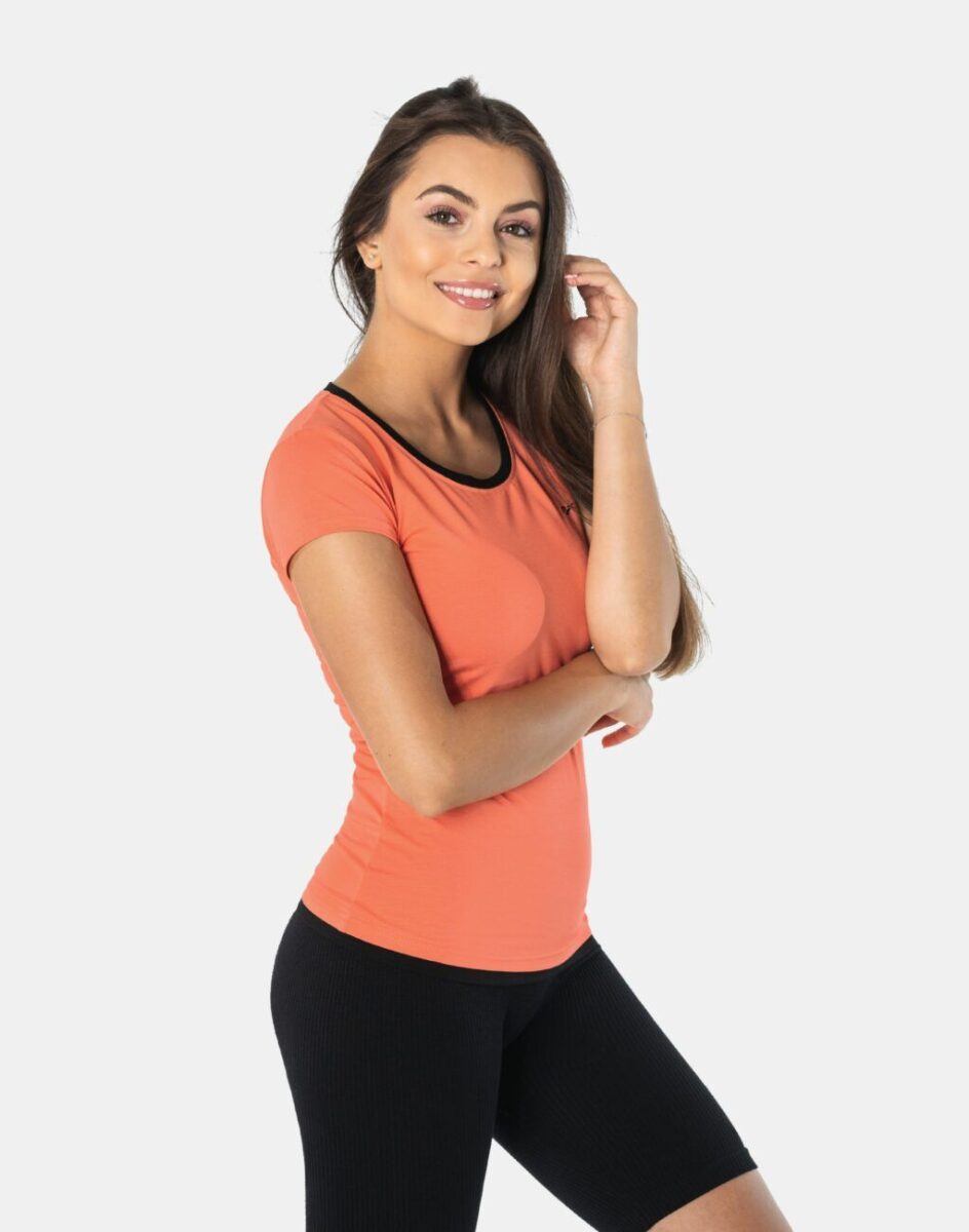 Komfortowa koszulka sportowa polskiej firmy RENNOX z kolekcji Fitness&Sport jest doskonałym wyborem dla kobiet aktywnych. Lekka jak piórko o delikatnie taliowanym kroju, cienka i przewiewna, idealna na co dzień jako element casualowego stroju czyniąc go lekkim i dostosowanym do wysokich temperatur. Może być z powodzeniem używana do rozmaitych zajęć sportowych jak i do noszenia na co dzień. Wykonana z wysokiej jakości dzianiny bawełnianej z domieszką elastanu, którą cechuje przede wszystkim lekkość i zwiewność. Zastosowany materiał jest oddychający „Dry-Fit”, odporny na promieniowanie UV, elastyczny, rozciągliwy w czterech kierunkach, idealnie dopasowuje się i jest bardzo komfortowy. Przyjemny w dotyku i odporny na zmechacenie a dzięki silikonowaniu włókien w procesie produkcji idealnie gładki. Zdobył aprobatę tysięcy zadowolonych klientek i uznawany jest za jeden z najlepszych do produkcji sportowej odzieży damskiej.