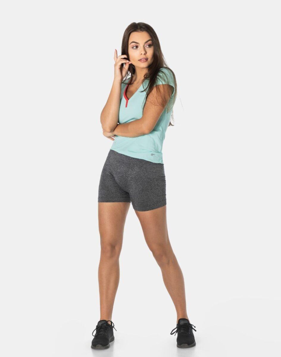 Tkanina jest antyzapachowa, antybakteryjna, antyalergiczna. Odprowadza wilgoć z powierzchni ciała. Utrzymuje balans termiczny ciała podczas wzmożonego wysiłku fizycznego. Bardzo krótki czas schnięcia w porównaniu z tradycyjną odzieżą – chroni przed wychłodzeniem ciała. To propozycja dla tych kobiet, które szukają nie tylko wygodnej i komfortowej koszulki ale również oczekują od niej wysokiej funkcjonalności i optymalnych właściwości termoaktywnych.