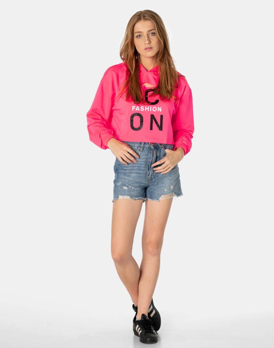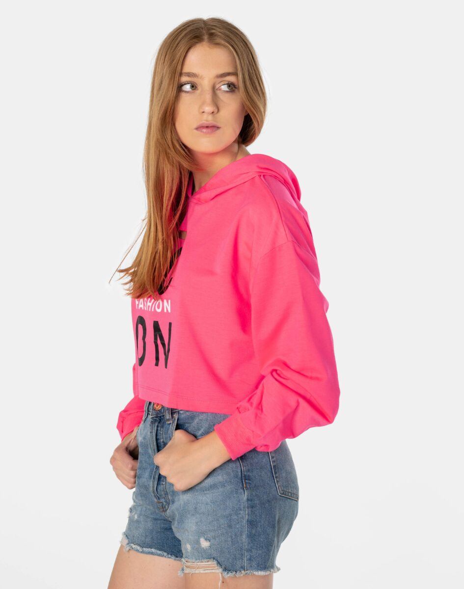 Krótka Bluza Damska Crop Top z Kapturem