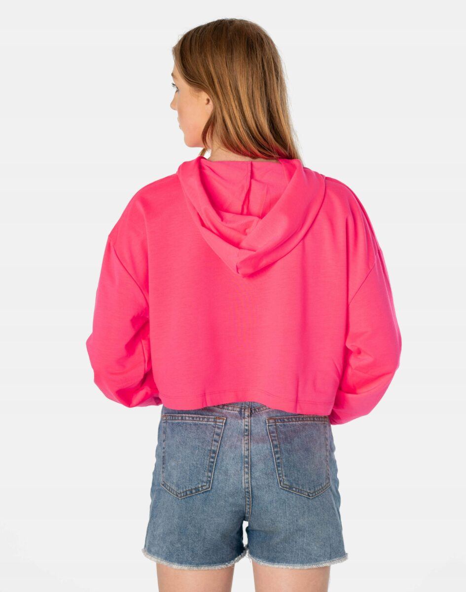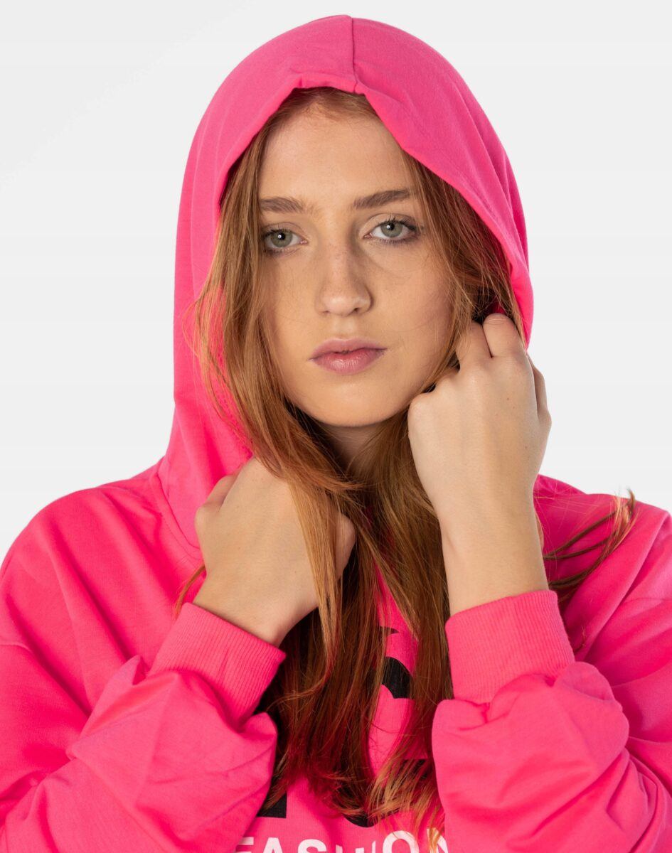 Sportowa, wyjątkowo dziewczęca krótka bluza z długim rękawem i praktycznym kapturem, to hit mody młodzieżowej, po który sięgają także dojrzałe panie bo prezentuje się świetnie na każdego rodzaju sylwetce. Z przodu bluzy naniesione trwałym termonadrukiem będące obecnie na topie duże napisy w stylu College z nimi przekażesz, co Ci w duszy gra. Inspirowane kampusowym klimatem amerykańskich uczelni, wyglądają rewelacyjnie w zestawie z jeansami lub dresowymi szortami. Tył gładki, bez nadruków. Wykonana z naturalnej, miękkiej, organicznej dzianiny bawełnianej o gramaturze 190g/m2 zapewniającej maksymalną wygodę i komfort użytkowania. Odpowiedni krój bluzy nie ogranicza swobody ruchów, a odpowiednia gramatura pozytywnie wpływa na komfort użytkowania.