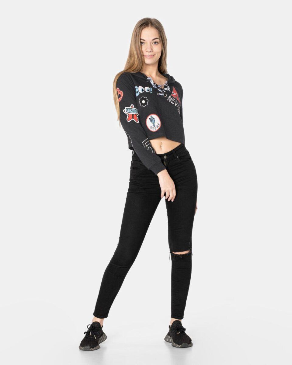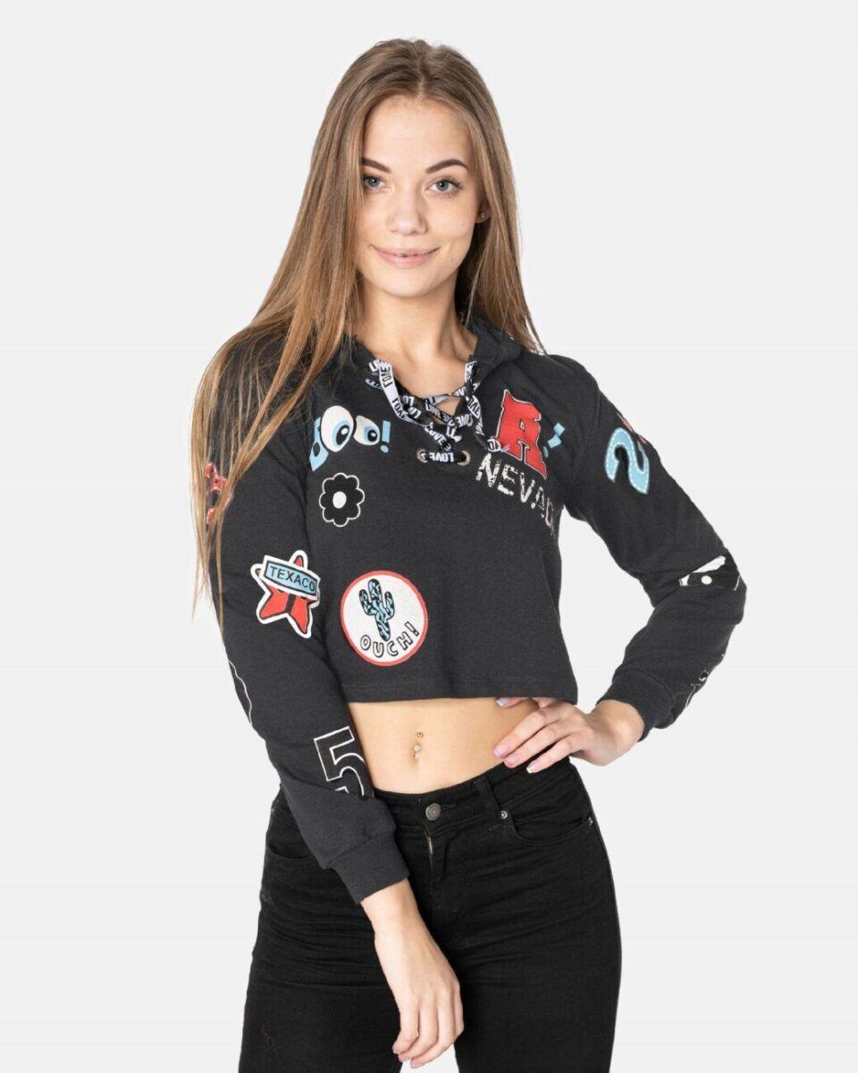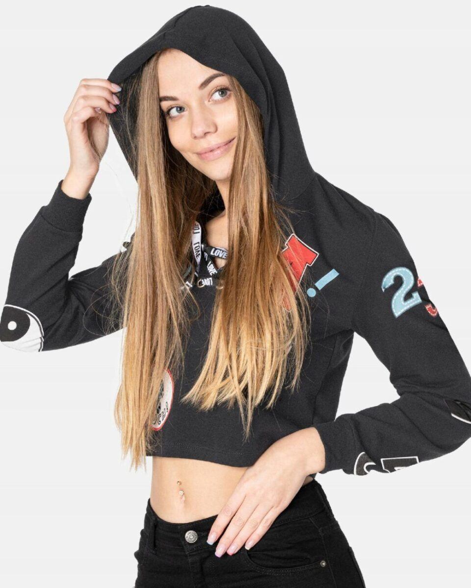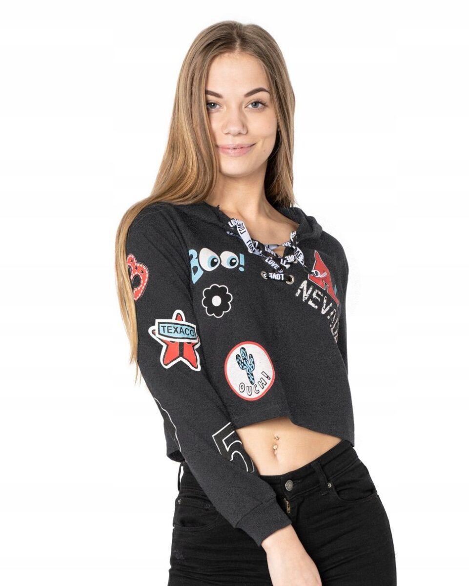 - Fason: Crop Top z kapturem