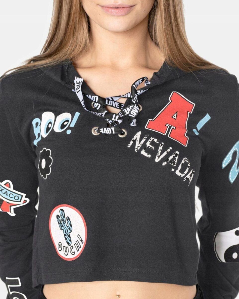 … to kolejny ulubieniec modnych kobiet. Skrócona długość świetnie prezentuje się w komplecie z jeansami lub dresowymi szortami. Możesz ubrać się w nigdy niewychodzący z mody Crop Top z nadrukiem w stylu college, który będzie wyjątkowy i jedyny w swoim rodzaju.