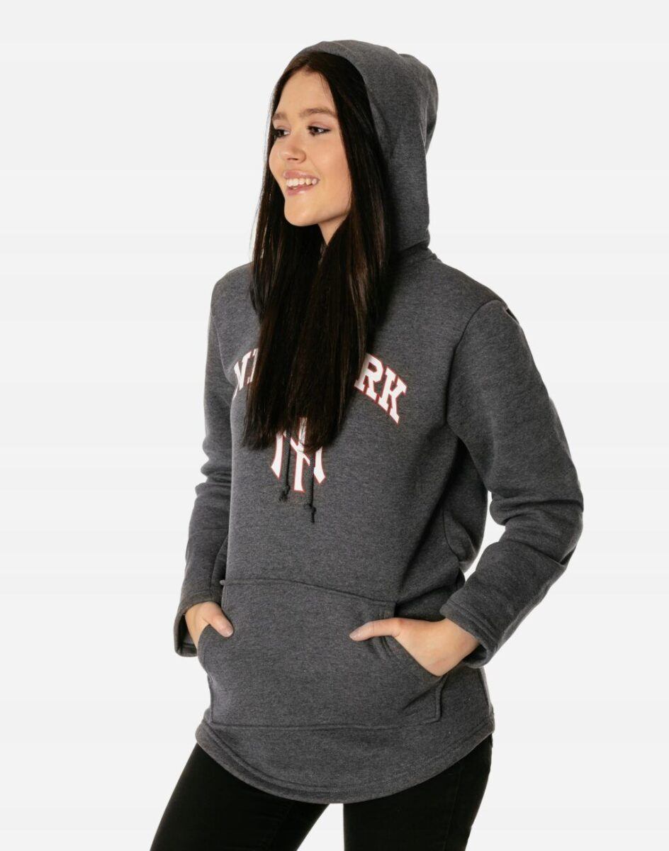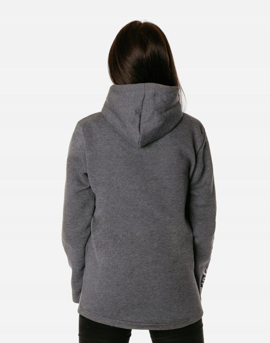 Sportowa bluza damska typu kangurka wyprodukowana z dzianiny bawełnianej, zapewniającej maksymalną wygodę i komfort użytkowania. Naturalna bawełna gwarantuje wspaniałą izolację cieplną, wchłanianie potu i oddychanie skóry, a sam materiał odznacza się dużą miękkością. Wysoka jakość zastosowanej do produkcji dzianiny bawełnianej to gwarancja pełnej swobody ruchów oraz stabilności rozmiarów i kolorów po wielokrotnym praniu. Klasyczna, gładka, wkładana przez głowę, przodem i tyłem dłuższa, bokami krótsza. Bluza posiada podwójną wygodną kieszeń tak zwaną „kangurkę” i zintegrowany kaptur z możliwością regulacji wielkości i dopasowania taśmowym ściągaczem. Ergonomiczny krój bluzy nie ogranicza swobody ruchów co wpływa pozytywnie na wygodę użytkowania.