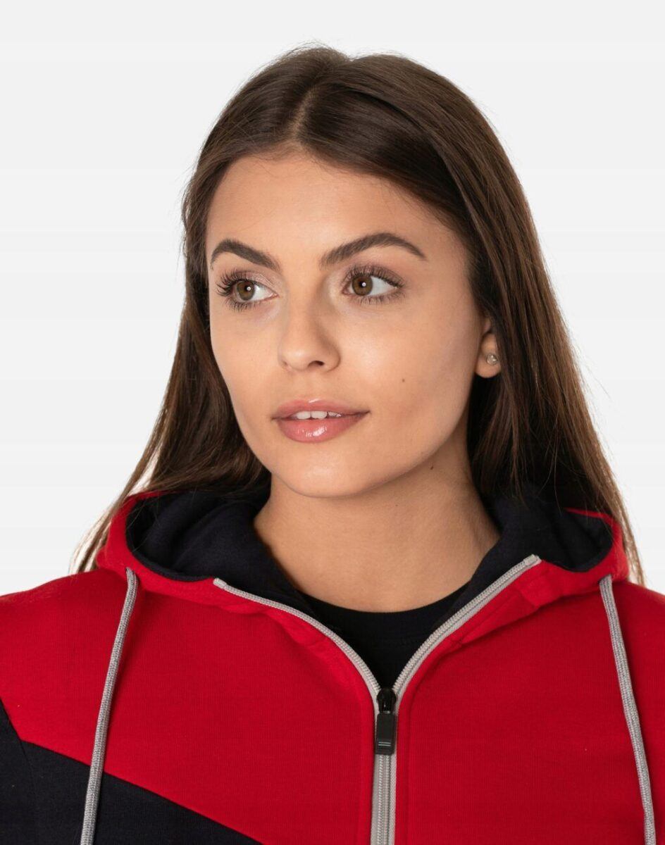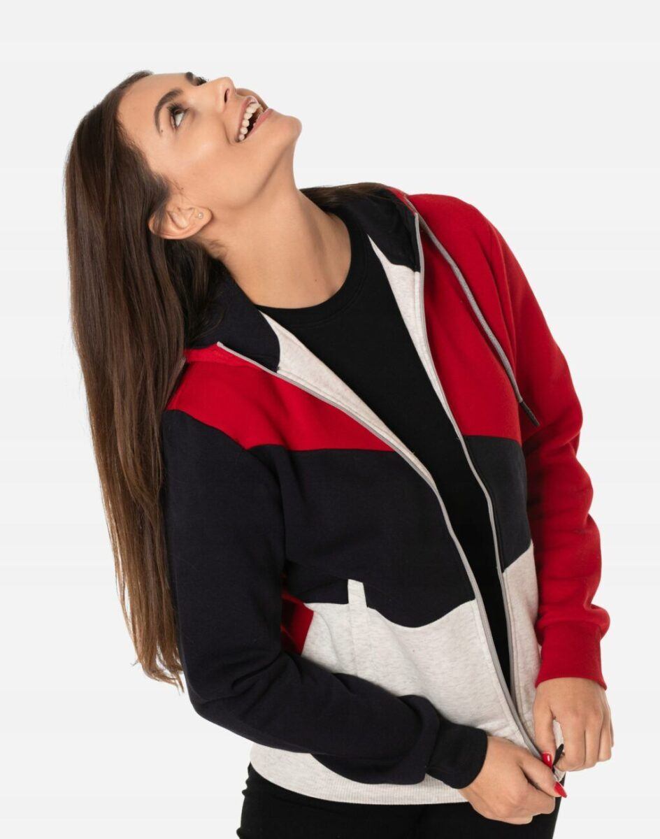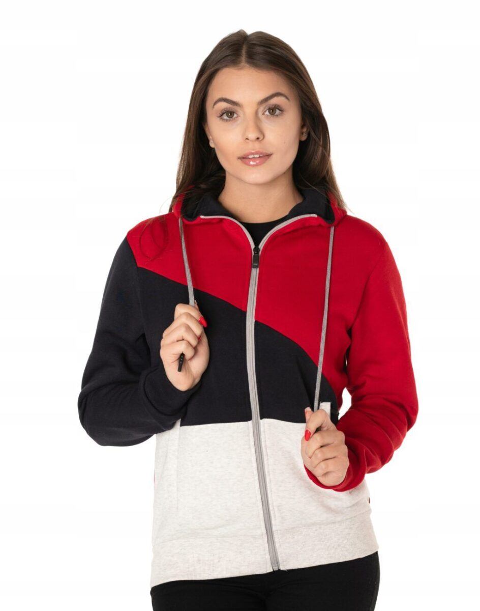 Ciepła Sportowa Bluza Damska Zasuwana na Zamek z Kapturem