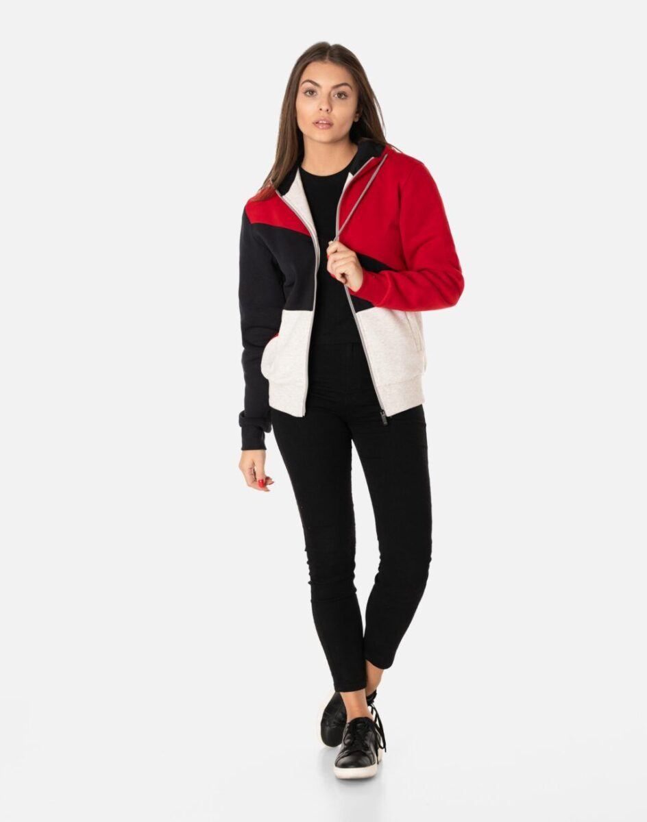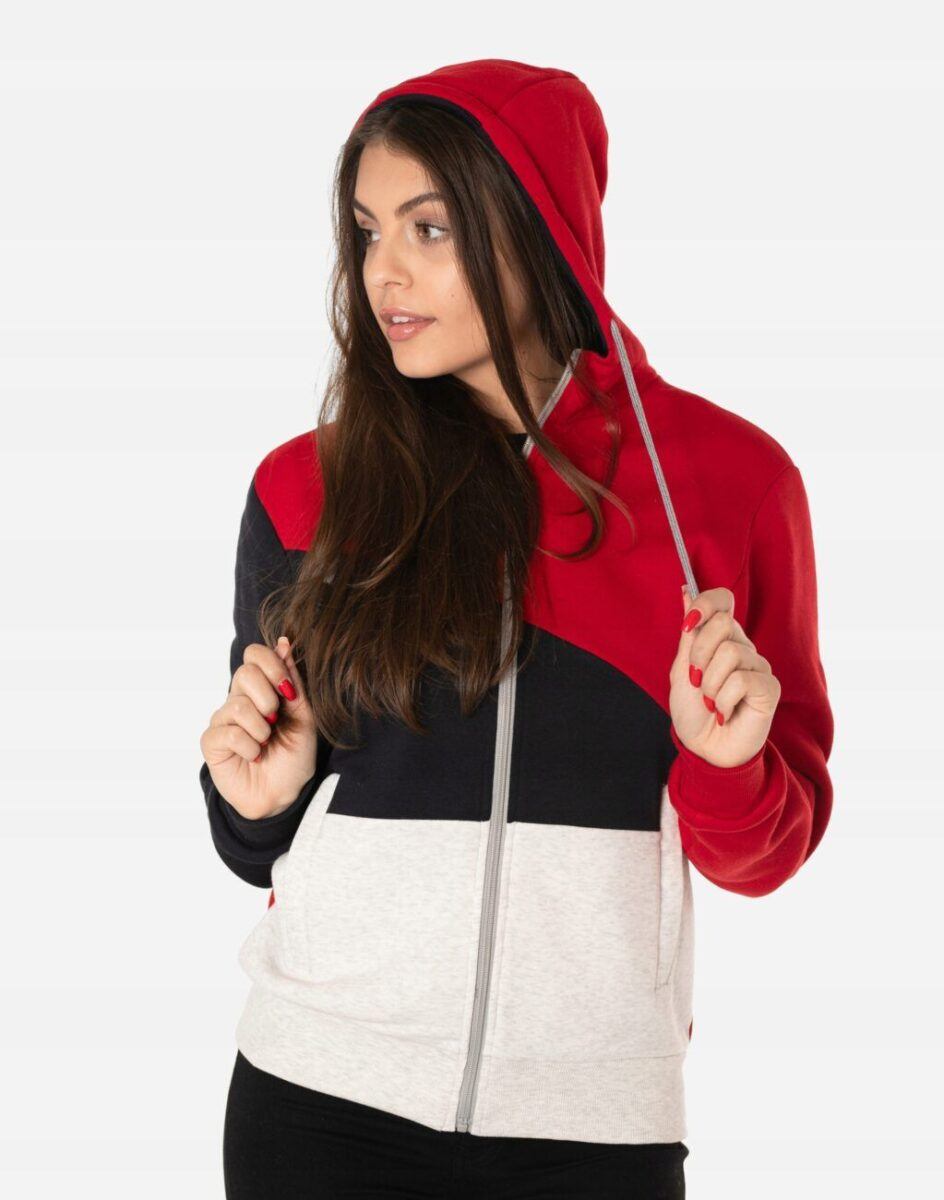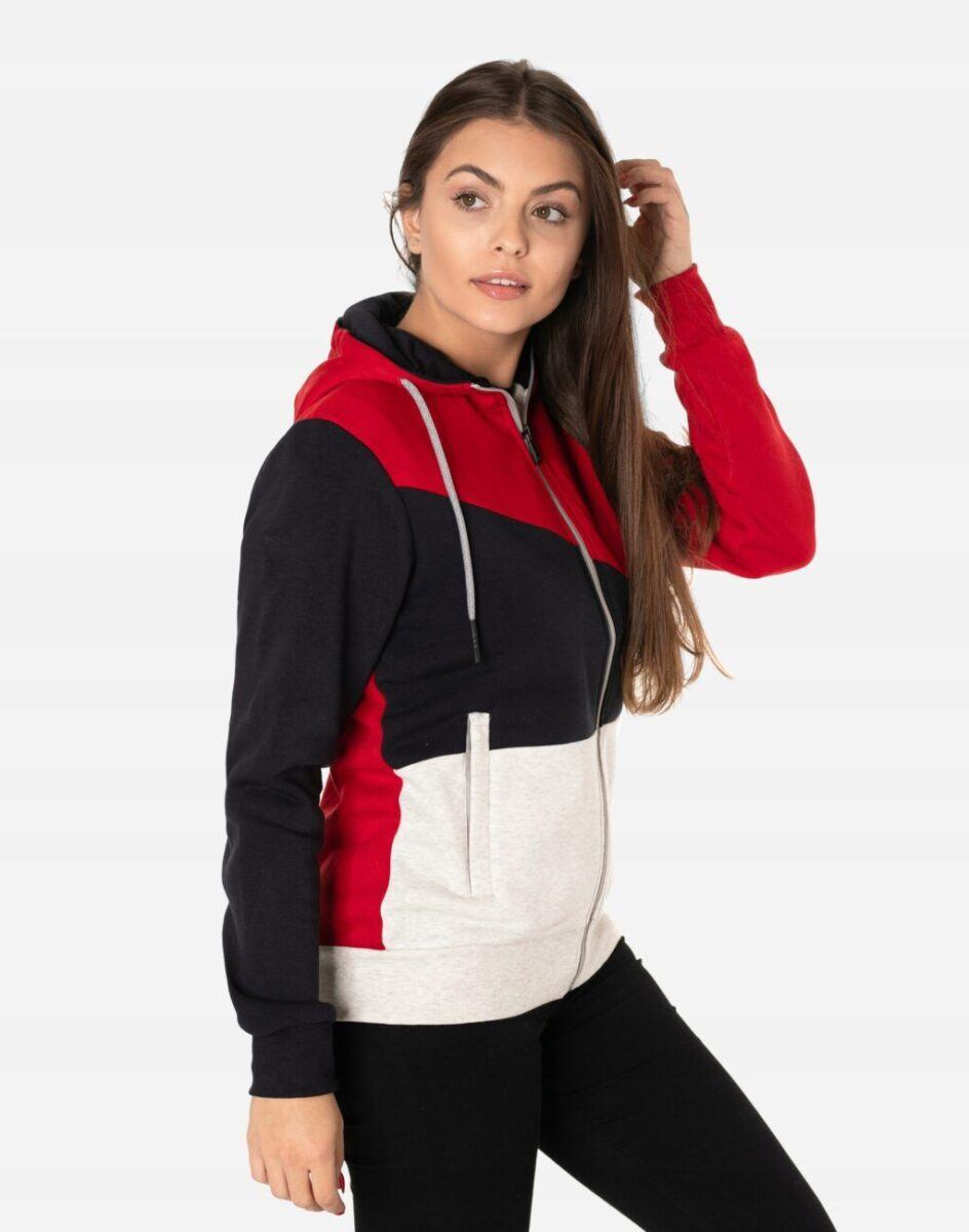 Znakomicie sprawdzi się w chłodniejsze dni bo jest wyjątkowo ciepła i bardzo wygodna, a wysoki zasuwany na zamek kołnierz zintegrowany z kapturem ochroni Twoją głowę, podbródek i szyję przed zimnem i wiatrem a często zastępuje nawet szalik co jest bardzo wygodne. Bluza zasuwana jest w całości na zamek błyskawiczny i posiada dwie wpuszczane kieszenie na dłonie zasuwane również na eklery. Dół bluzy oraz rękawy wykończone szerokim elastycznym ściągaczem co pozwala na precyzyjne dopasowanie bluzy do ciała i zapobiega utracie ciepła. Długość midi, która z powodzeniem zakrywa części ciała wrażliwe na chłód jak plecy na wysokości nerek i pośladki.