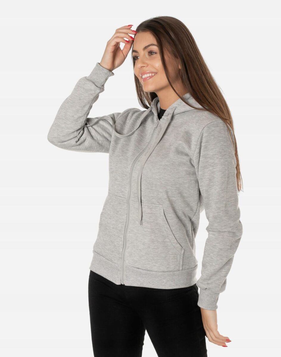 Znakomicie sprawdzi się w chłodniejsze dni, bo jest wyjątkowo ciepła i bardzo wygodna. Bluza zasuwana jest w całości na zamek błyskawiczny i posiada dwie naszywane kieszenie na dłonie. Dół bluzy oraz rękawy wykończone szerokim elastycznym ściągaczem co pozwala na precyzyjne dopasowanie bluzy do ciała i zapobiega utracie ciepła. Długość midi, która z powodzeniem zakrywa części ciała wrażliwe na chłód jak plecy na wysokości nerek i pośladki.