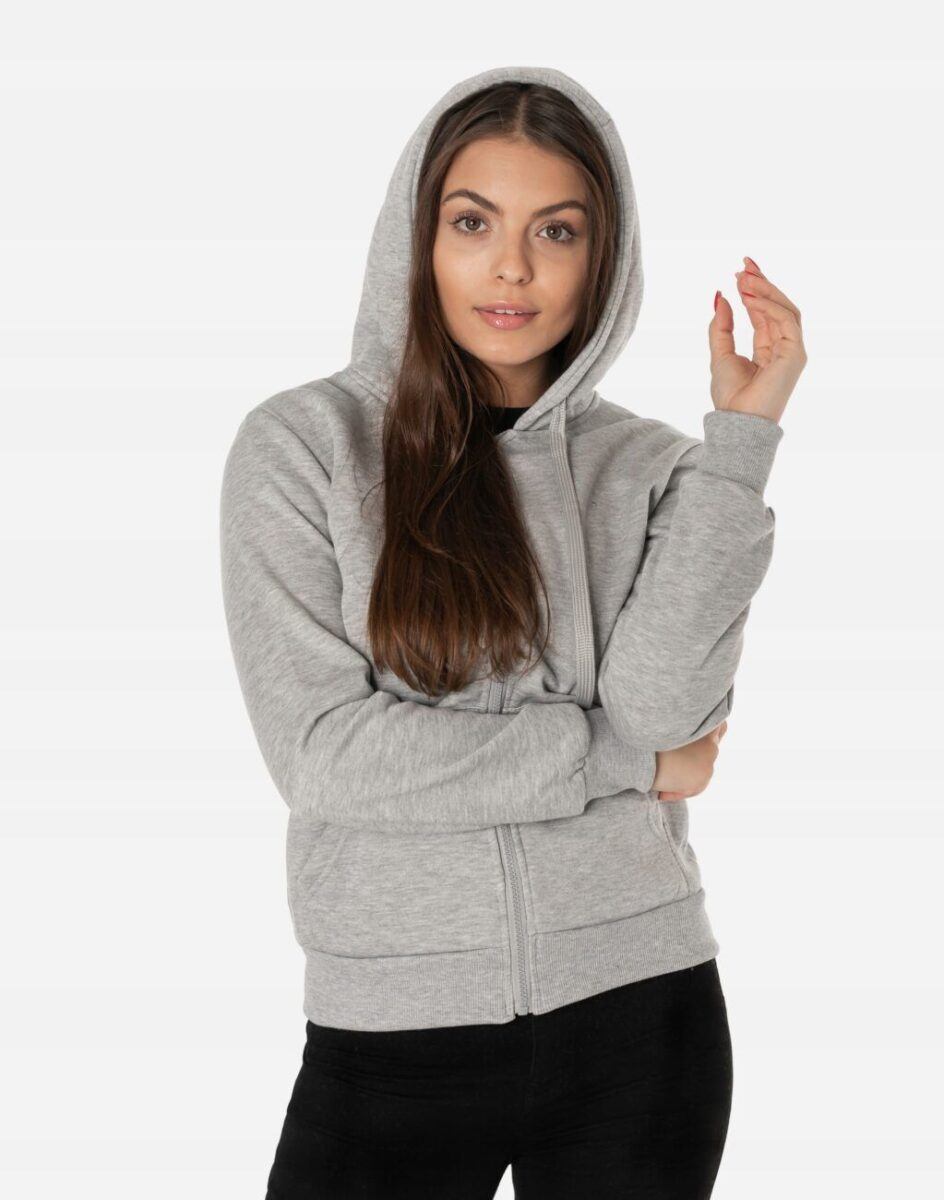 Ciepła Sportowa Bluza Damska Zasuwana na Zamek z Kapturem