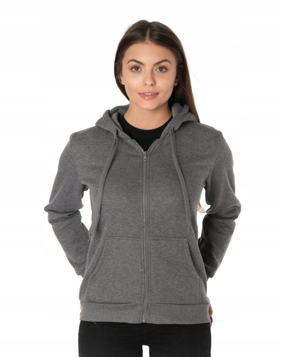 Ciepła Sportowa Bluza Damska Zasuwana na Zamek z Kapturem