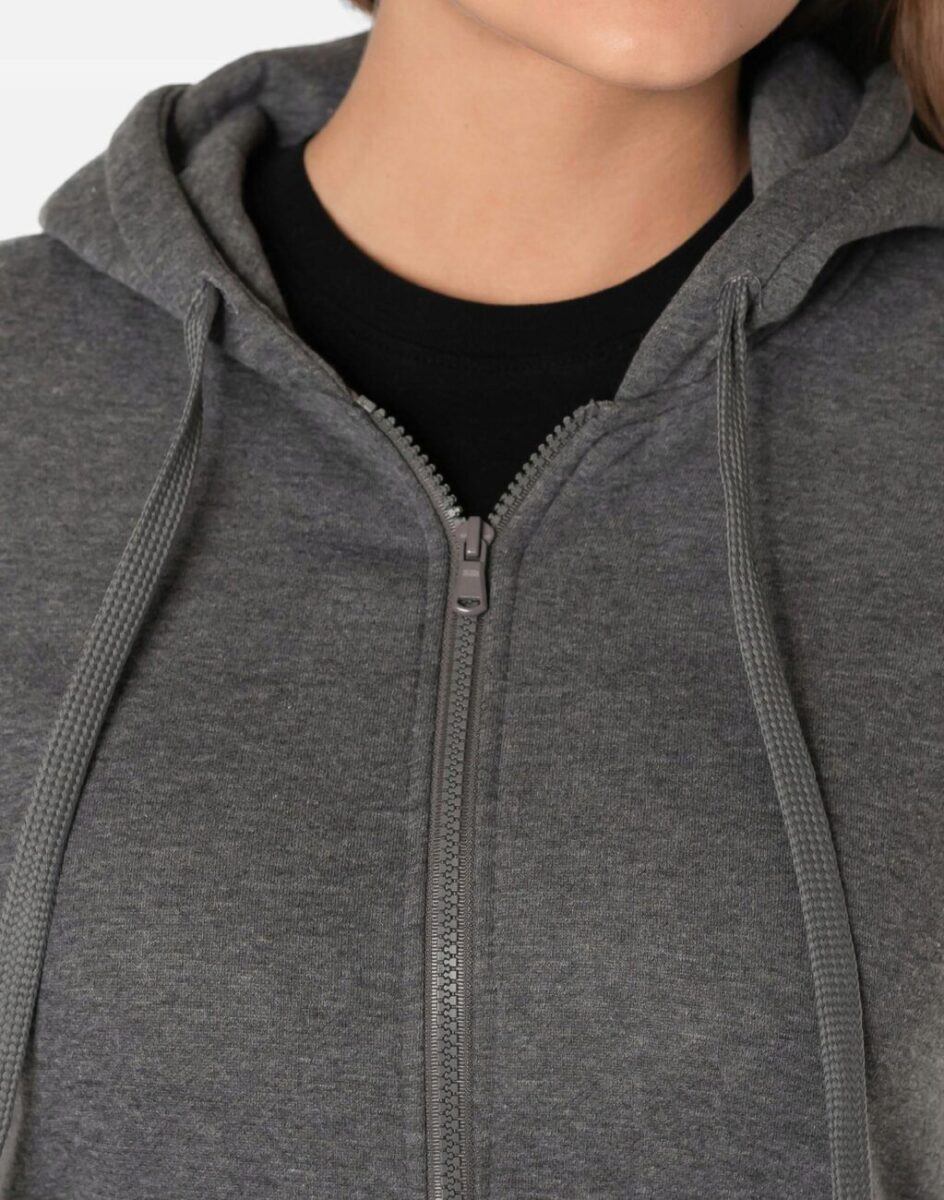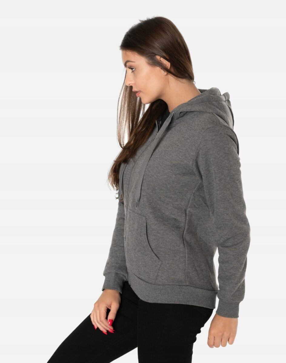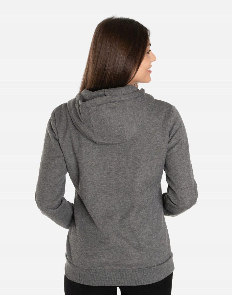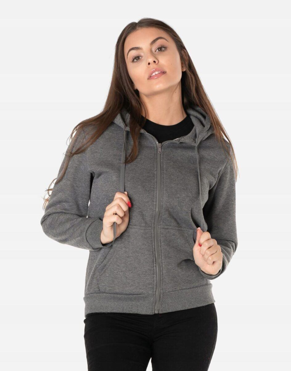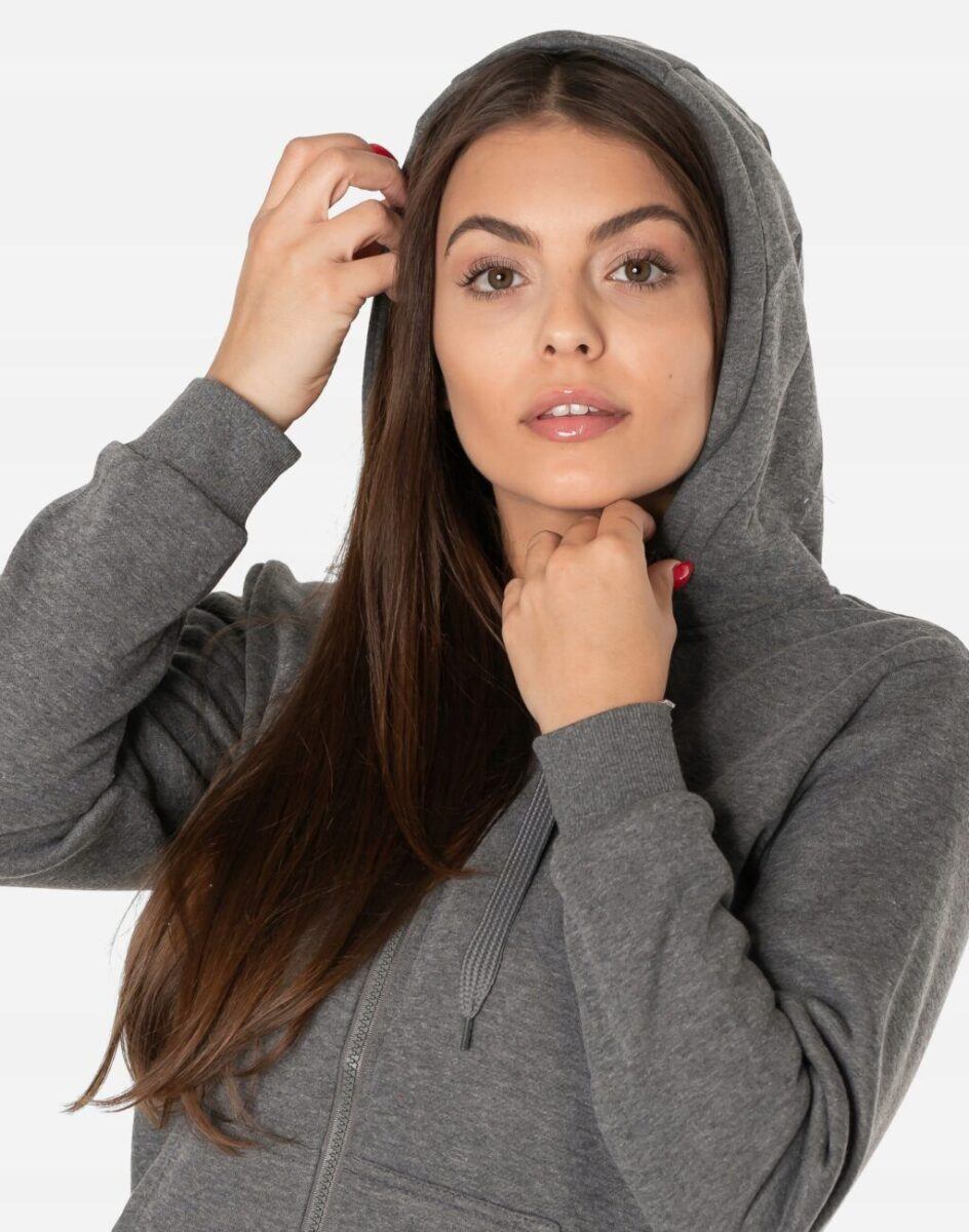 Znakomicie sprawdzi się w chłodniejsze dni, bo jest wyjątkowo ciepła i bardzo wygodna. Bluza zasuwana jest w całości na zamek błyskawiczny i posiada dwie naszywane kieszenie na dłonie. Dół bluzy oraz rękawy wykończone szerokim elastycznym ściągaczem co pozwala na precyzyjne dopasowanie bluzy do ciała i zapobiega utracie ciepła. Długość midi, która z powodzeniem zakrywa części ciała wrażliwe na chłód jak plecy na wysokości nerek i pośladki.