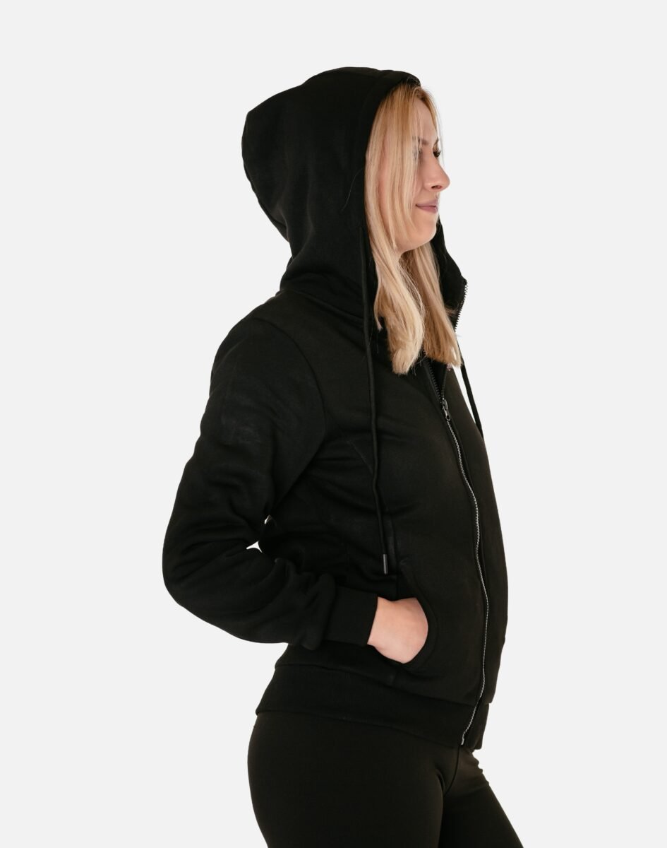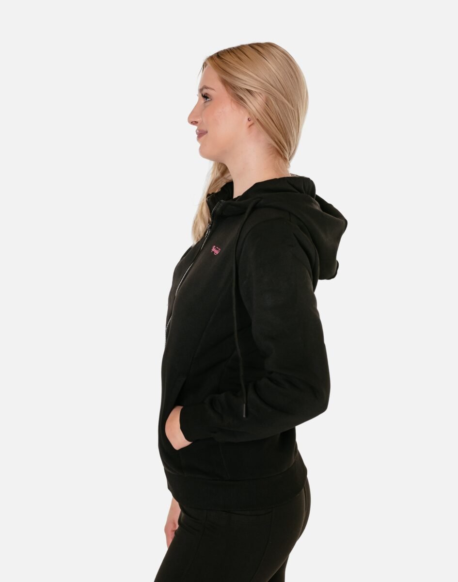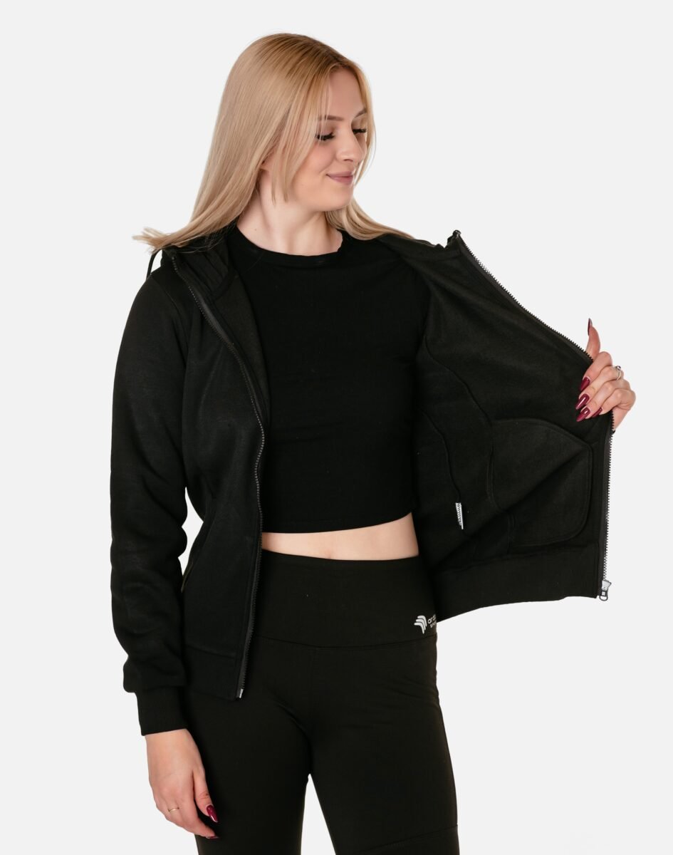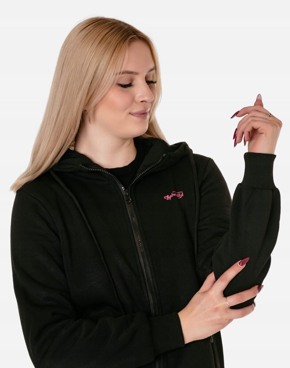Bluza zasuwana jest w całości na zamek błyskawiczny i posiada dwie wpuszczane kieszenie na dłonie. Dół bluzy oraz rękawy wykończone są szerokim elastycznym ściągaczem, co pozwala na precyzyjne dopasowanie bluzy do ciała i zapobiega utracie ciepła. Długość midi która z powodzeniem zakrywa części ciała wrażliwe na chłód jak plecy na wysokości nerek i pośladki. Znakomicie sprawdzi się w chłodniejsze dni, a praktyczny kaptur z możliwością regulacji wielkości i dopasowania skutecznie ochroni Twoją głowę przed wiatrem i chłodem. Możesz w niej chodzić na co dzień, idealnie nadaje się również do uprawiania różnych dyscyplin sportu i rekreacji.