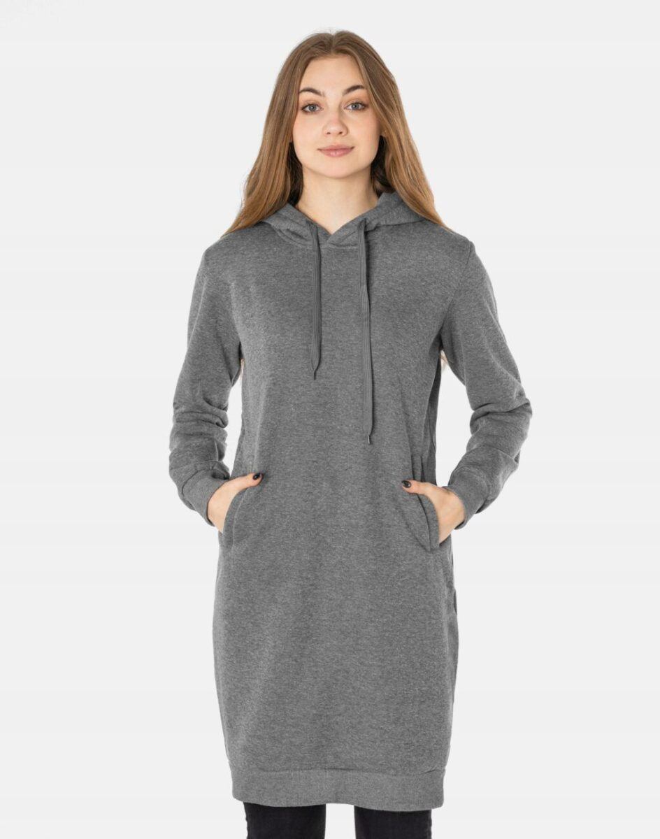 Wygodna Sportowa Długa Bluza Damska Z Kapturem