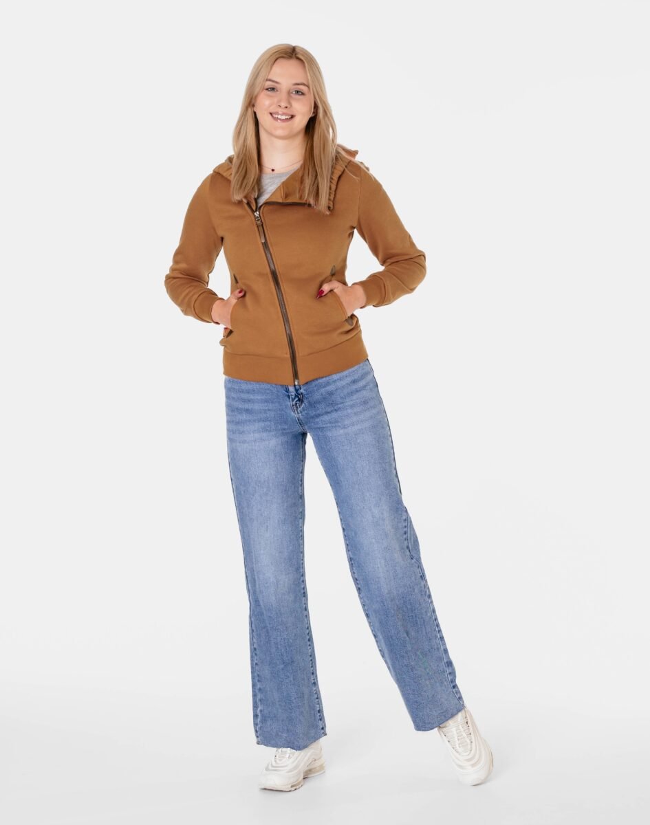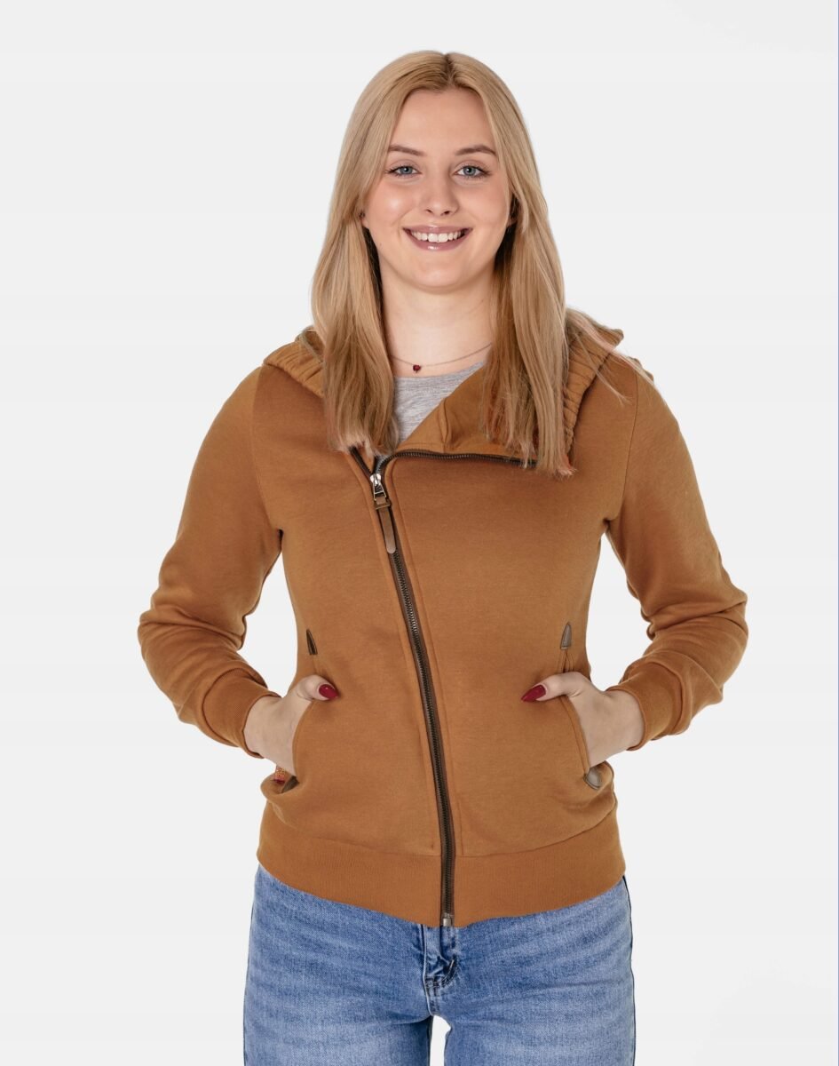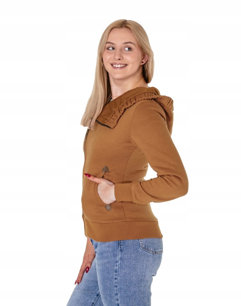 Znakomicie sprawdzi się w chłodniejsze dni, bo jest wyjątkowo ciepła i bardzo wygodna. Bluza zasuwana jest w całości na asymetryczny zamek błyskawiczny i posiada dwie wpuszczane kieszenie na dłonie. Dół bluzy oraz rękawy zakończone są szerokim elastycznym ściągaczem, co pozwala na precyzyjne dopasowanie bluzy do ciała i zapobiega utracie ciepła. Długość midi, która z powodzeniem zakrywa części ciała wrażliwe na chłód jak plecy na wysokości nerek i pośladki.