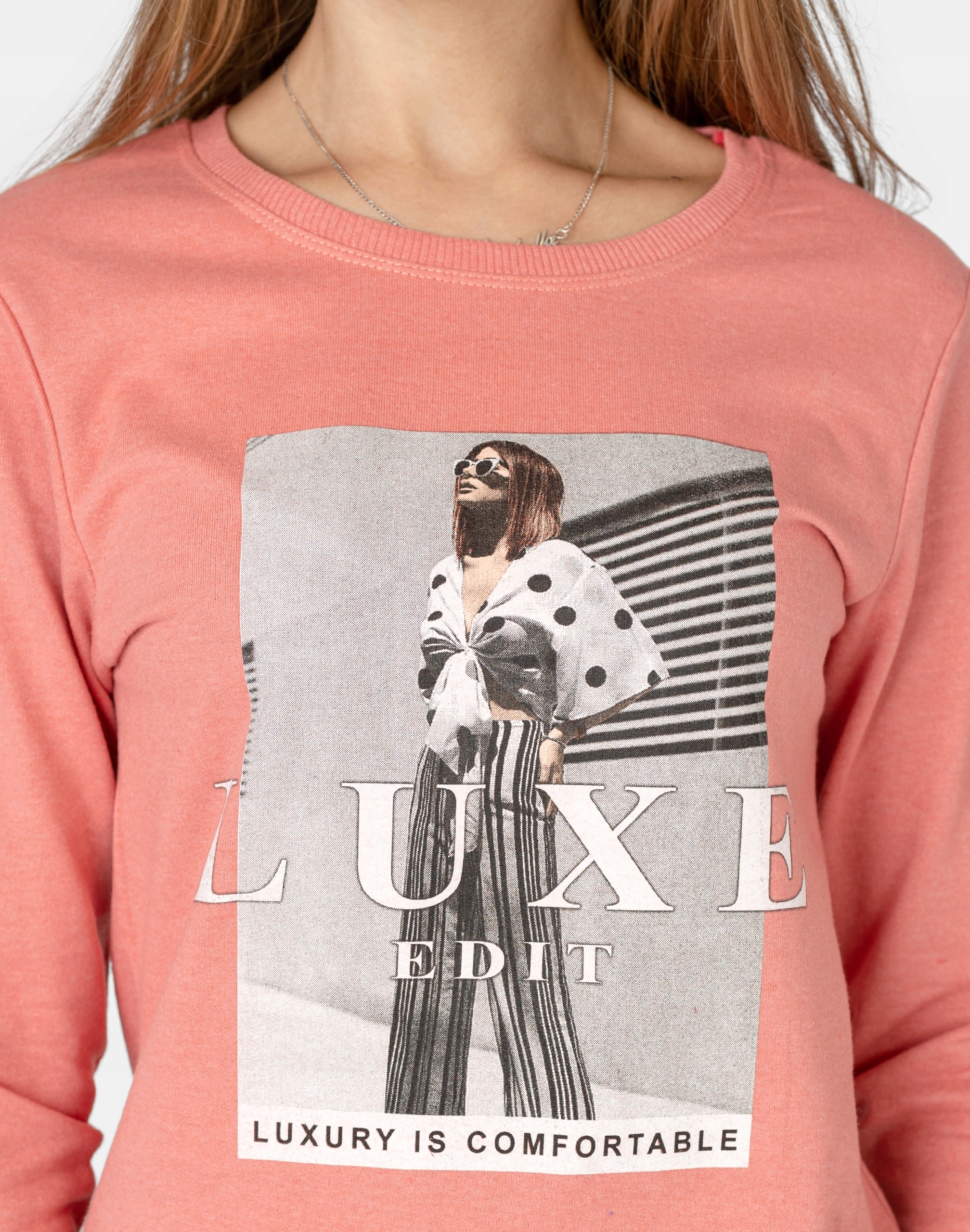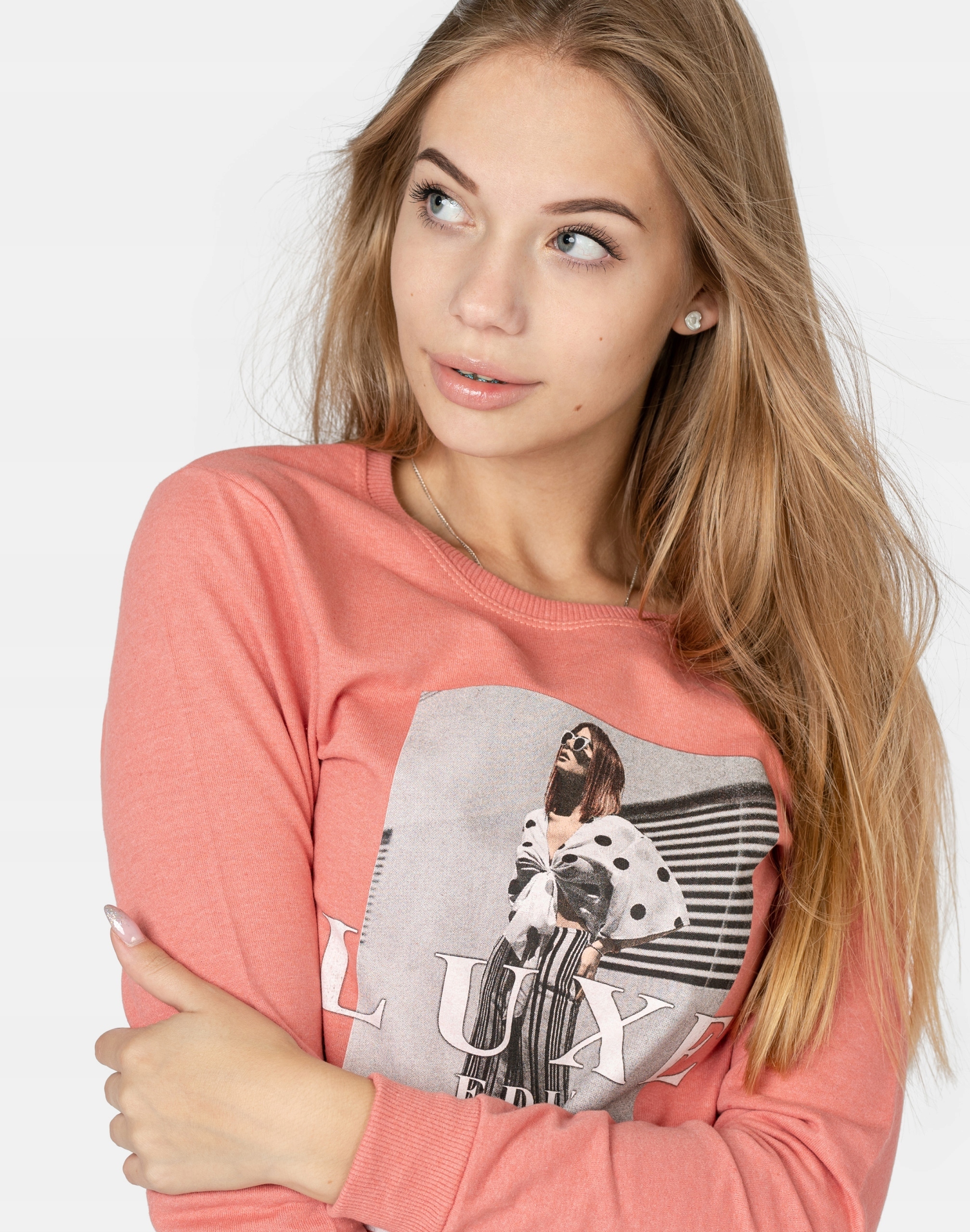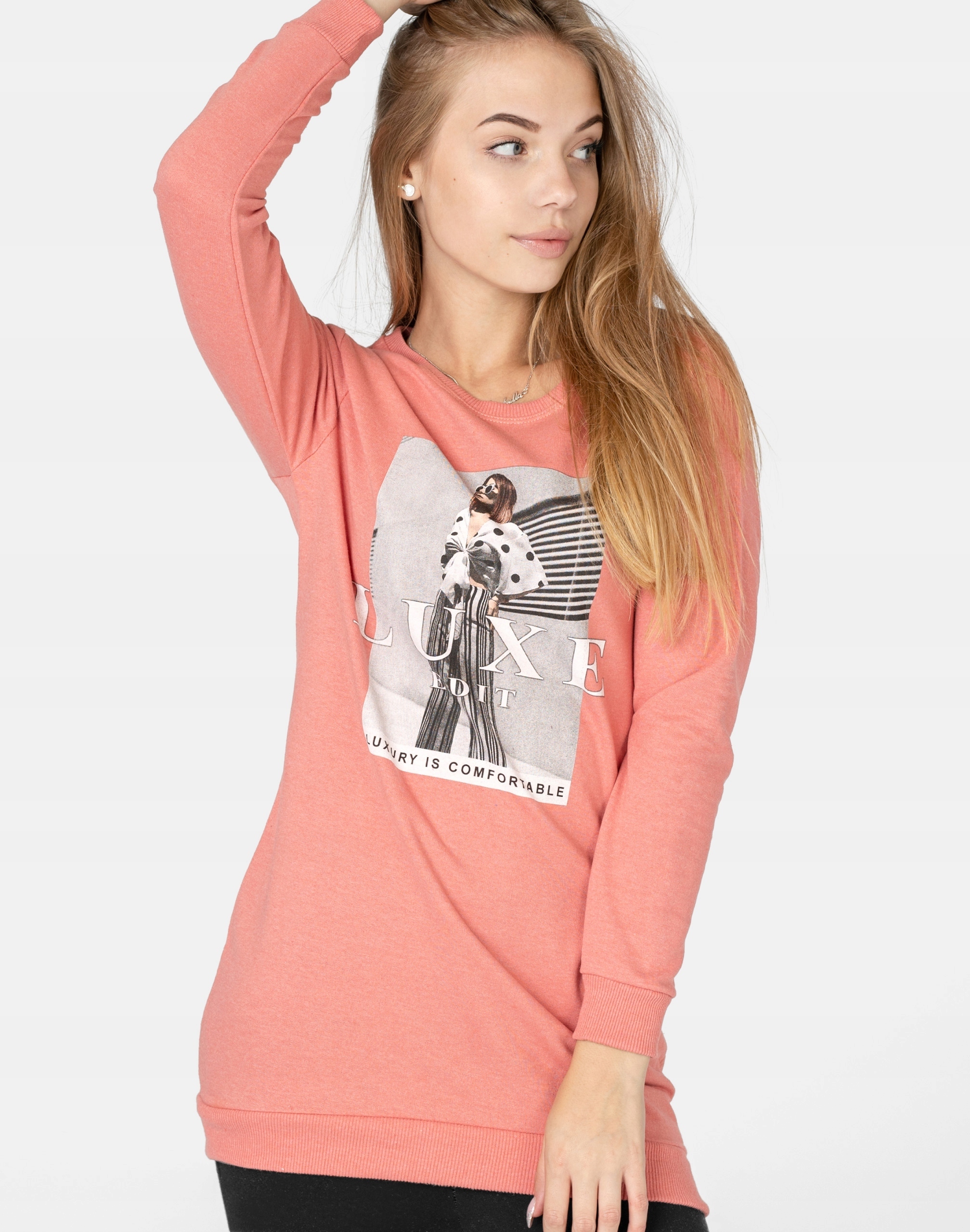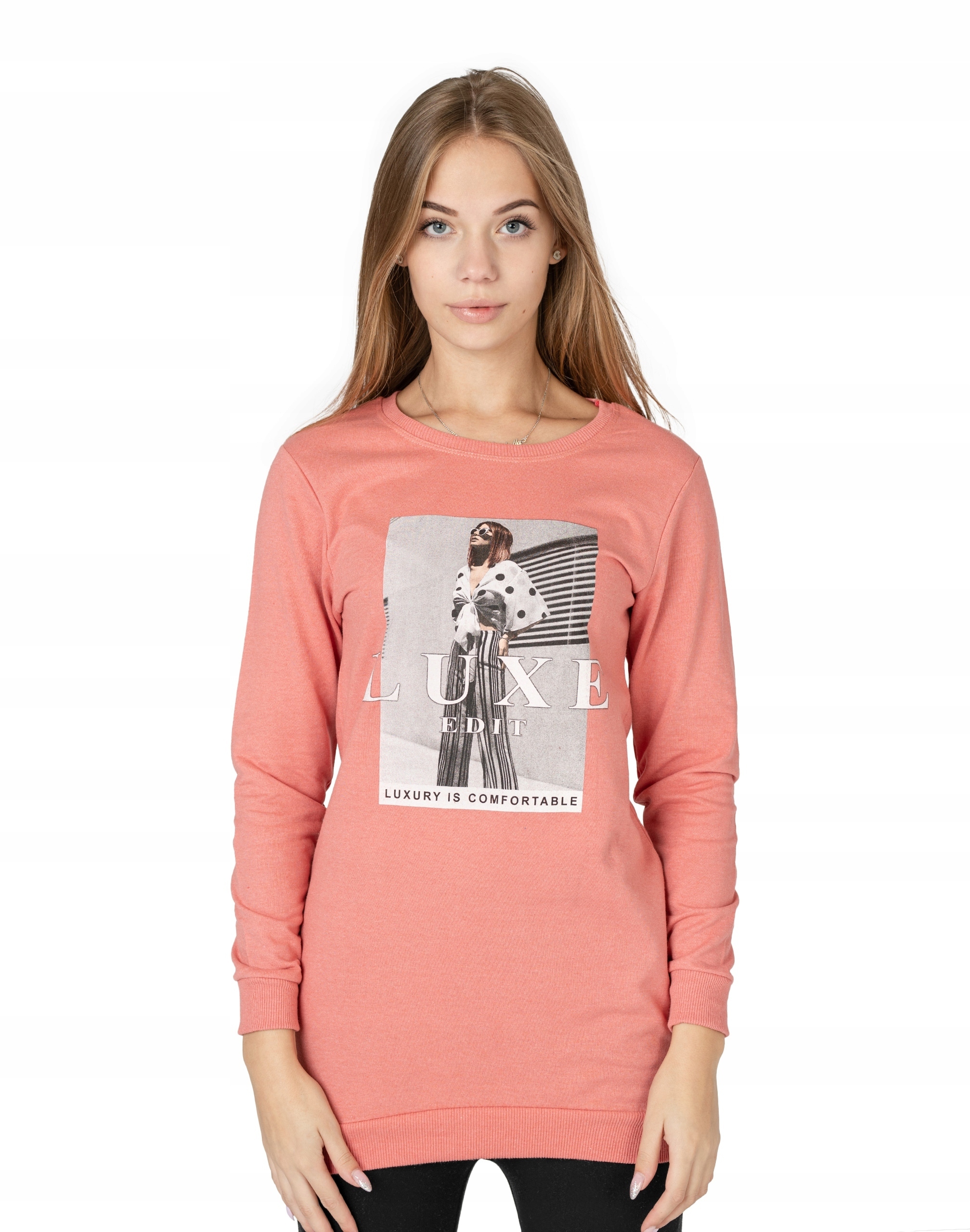 Długa sportowa bluza damska bawełniana z efektownym nadrukiem