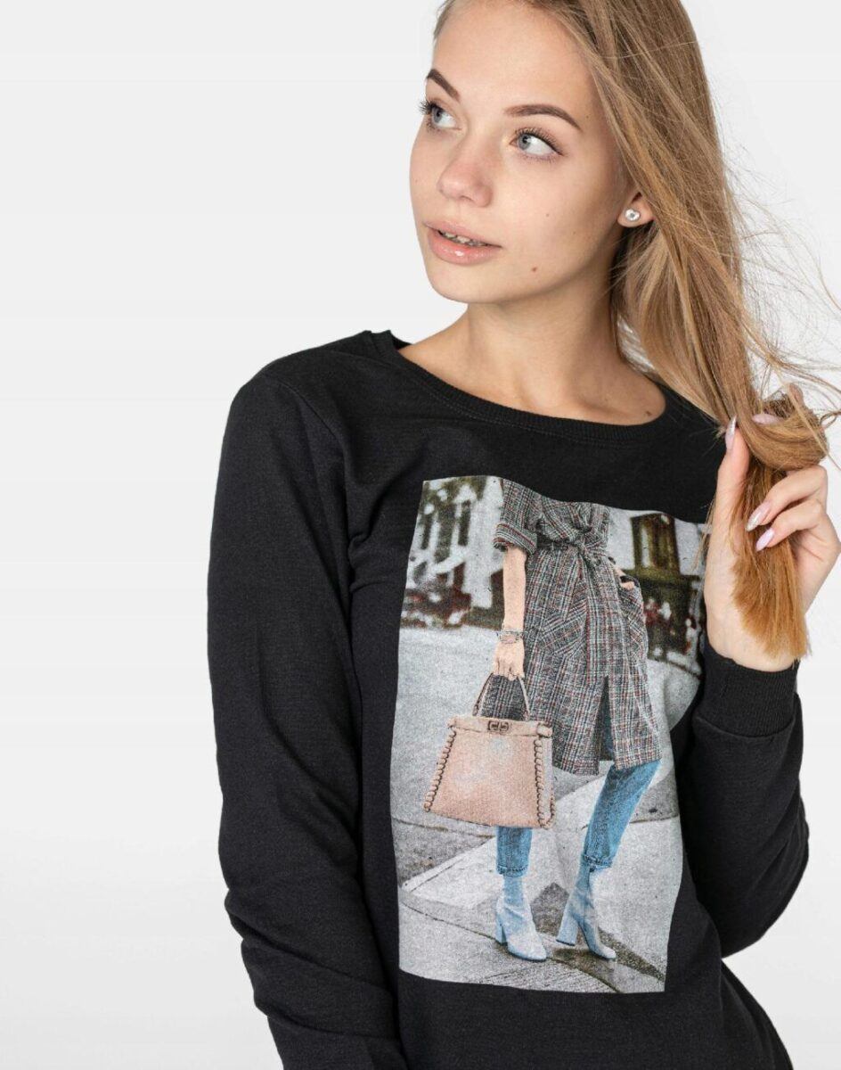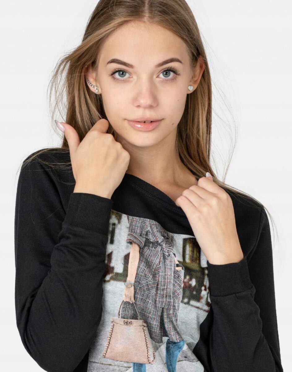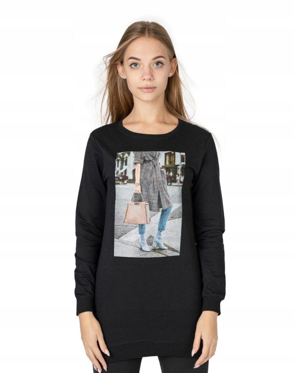 Długa sportowa bluza damska bawełniana z efektownym nadrukiem