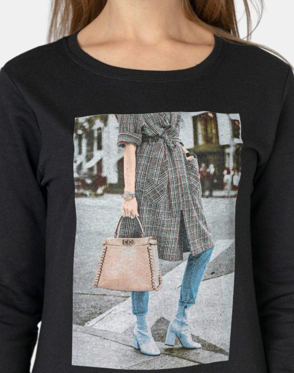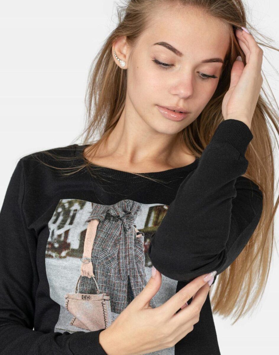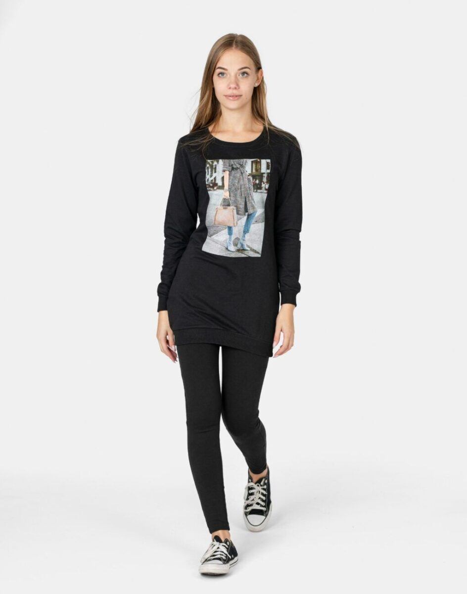 Długa sportowa bluza damska bawełniana z efektownym nadrukiem