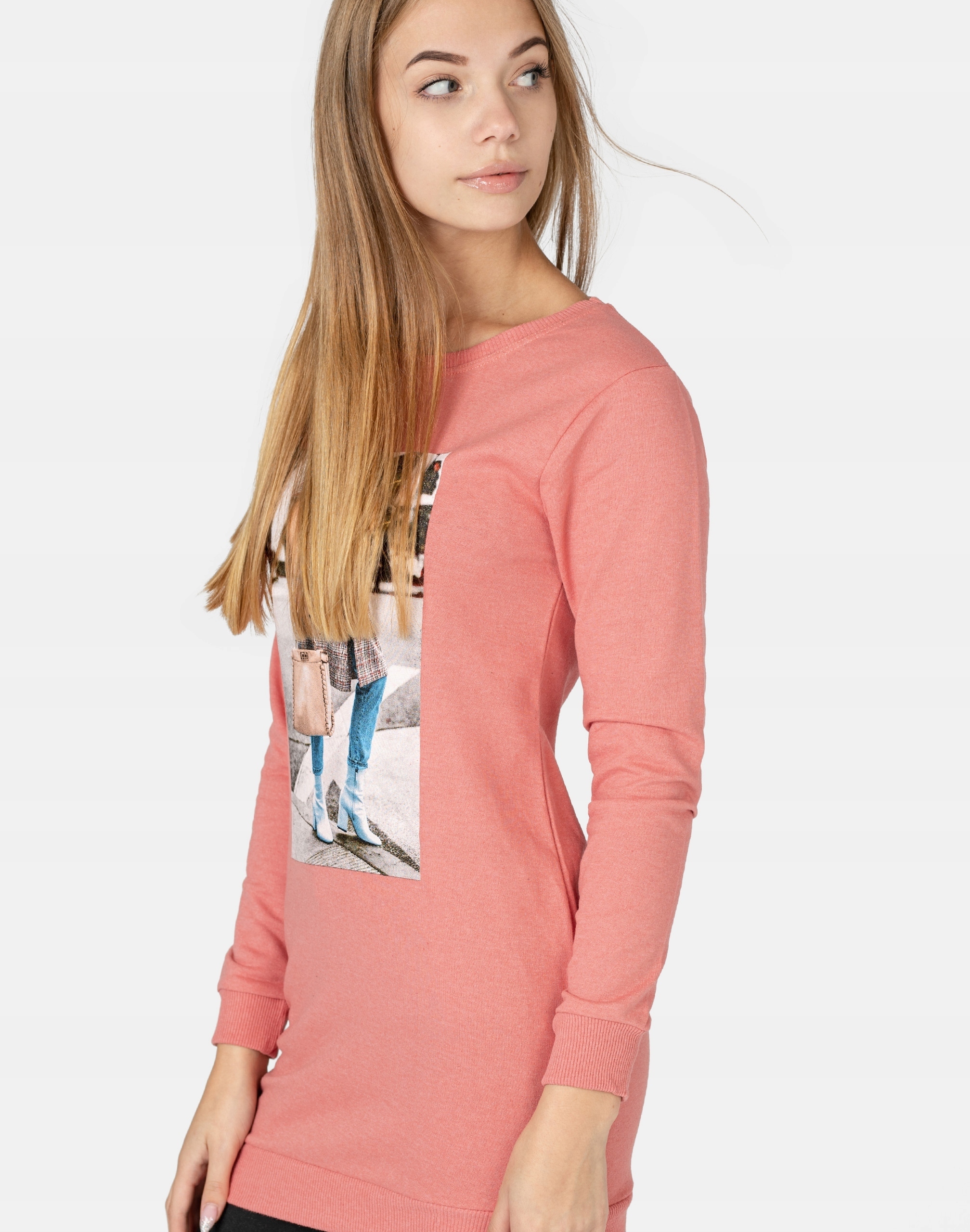 Długa sportowa bluza damska bawełniana z efektownym nadrukiem