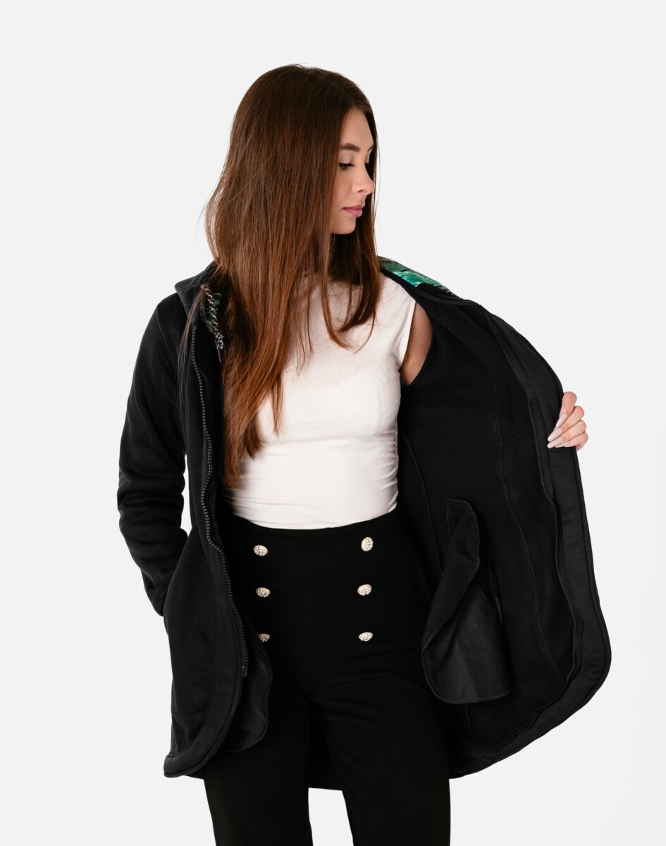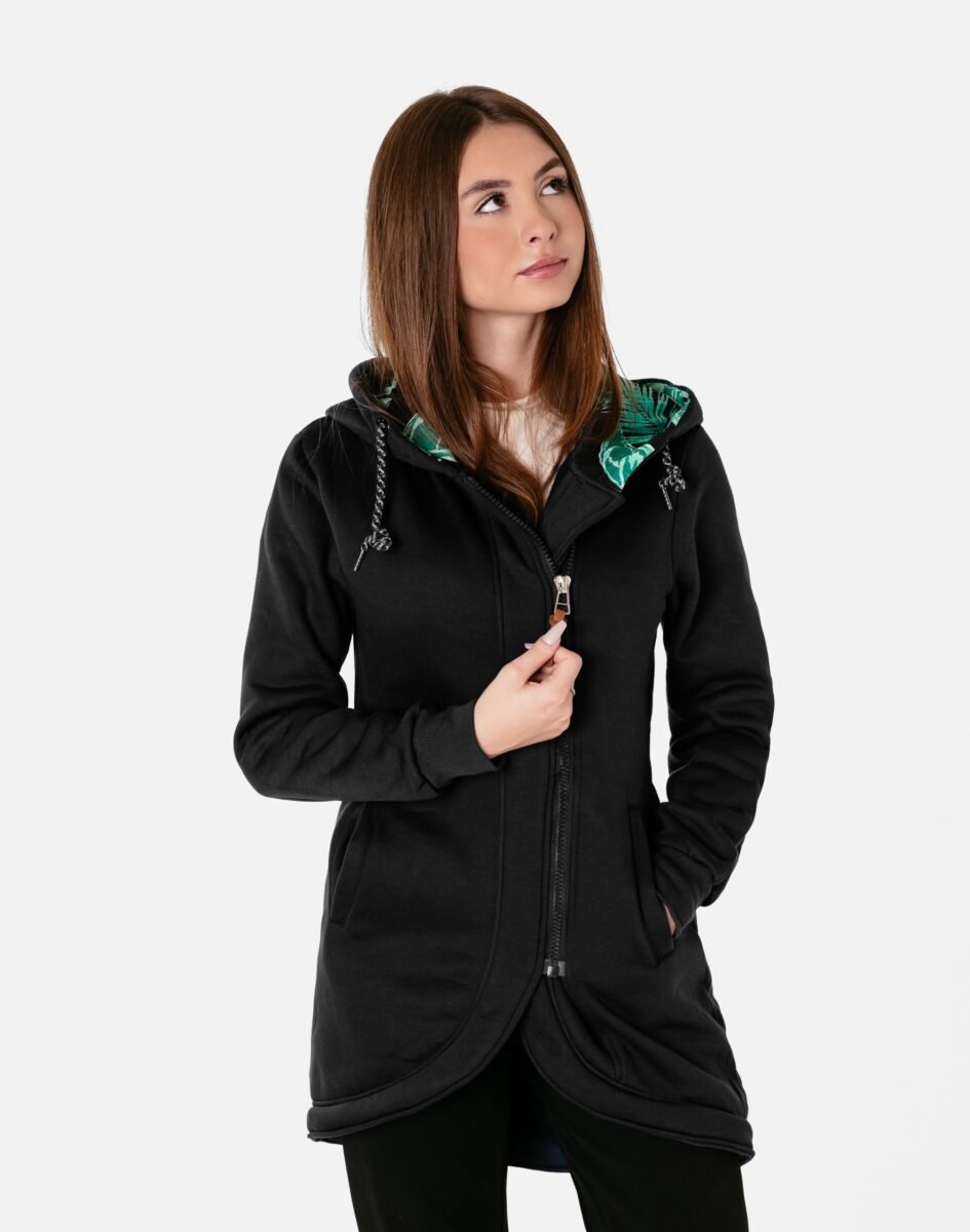Długa bluza/tunika o kroju płaszcza przyda Ci się przez cały rok: w zimie możesz nosić ją pod płaszczem lub długą kurtką, a wiosną i jesienią przyda się jako samodzielne okrycie w chłodniejsze lub wietrzne dni. Doskonale komponuje się zarówno z legginsami, jak i jeansami. Niepodważalną zaletą bluzy/tuniki jest możliwość noszenia jej w rozmaitych warunkach pogodowych. Zapewnia ciepło podczas chłodnej i wietrznej pogody, a wraz ze wzrostem temperatury wystarczy rozpiąć zamek by poczuć się w niej komfortowo.