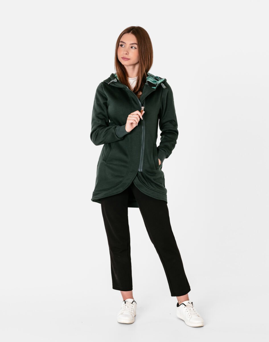 Długa bluza/tunika o kroju płaszcza przyda Ci się przez cały rok: w zimie możesz nosić ją pod płaszczem lub długą kurtką, a wiosną i jesienią przyda się jako samodzielne okrycie w chłodniejsze lub wietrzne dni. Doskonale komponuje się zarówno z legginsami, jak i jeansami. Niepodważalną zaletą bluzy/tuniki jest możliwość noszenia jej w rozmaitych warunkach pogodowych. Zapewnia ciepło podczas chłodnej i wietrznej pogody, a wraz ze wzrostem temperatury wystarczy rozpiąć zamek by poczuć się w niej komfortowo.