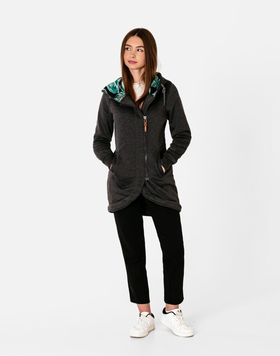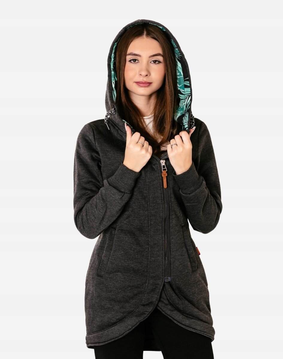 Długa bluza/tunika o kroju płaszcza przyda Ci się przez cały rok: w zimie możesz nosić ją pod płaszczem lub długą kurtką, a wiosną i jesienią przyda się jako samodzielne okrycie w chłodniejsze lub wietrzne dni. Doskonale komponuje się zarówno z legginsami, jak i jeansami. Niepodważalną zaletą bluzy/tuniki jest możliwość noszenia jej w rozmaitych warunkach pogodowych. Zapewnia ciepło podczas chłodnej i wietrznej pogody, a wraz ze wzrostem temperatury wystarczy rozpiąć zamek by poczuć się w niej komfortowo.