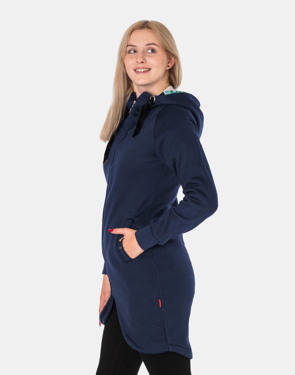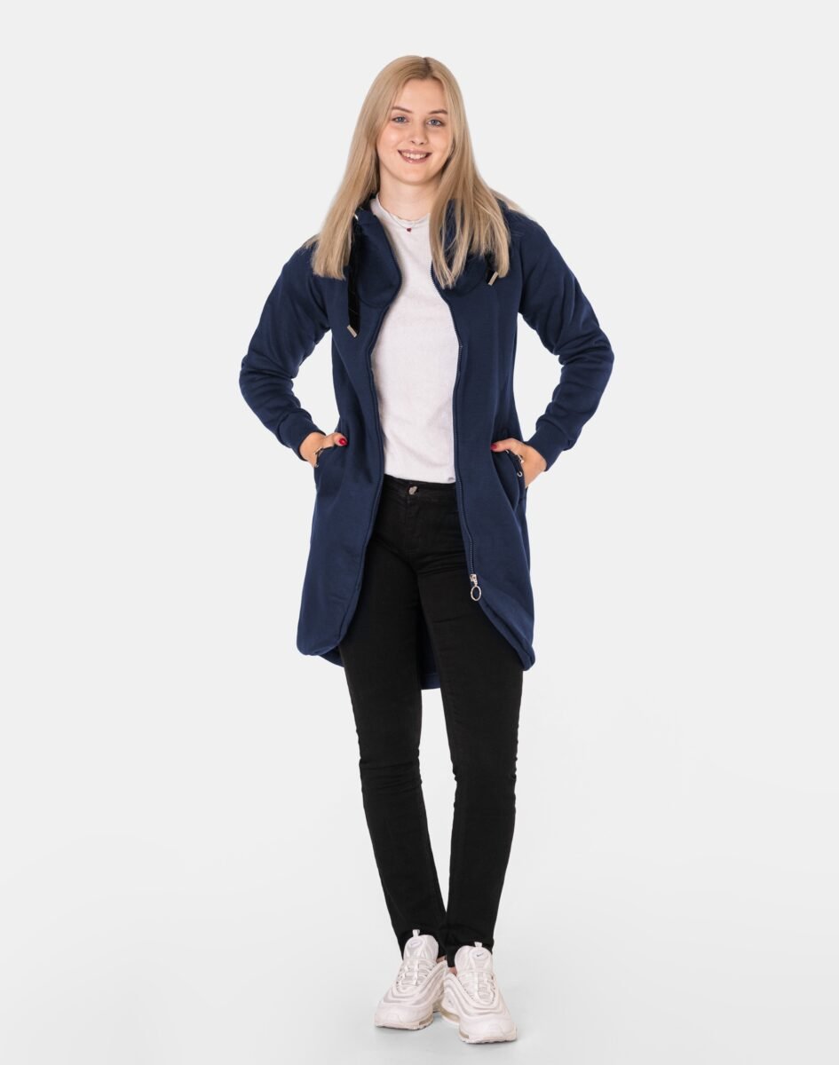 Długa bluza/tunika o kroju płaszcza przyda Ci się przez cały rok: w zimie możesz nosić ją pod płaszczem lub długą kurtką, a wiosną i jesienią przyda się jako samodzielne okrycie w chłodniejsze lub wietrzne dni. Doskonale komponuje się zarówno z legginsami, jak i jeansami. Niepodważalną zaletą bluzy/tuniki jest możliwość noszenia jej w rozmaitych warunkach pogodowych. Zapewnia ciepło podczas chłodnej i wietrznej pogody, a wraz ze wzrostem temperatury wystarczy rozpiąć zamek by poczuć się w niej komfortowo.