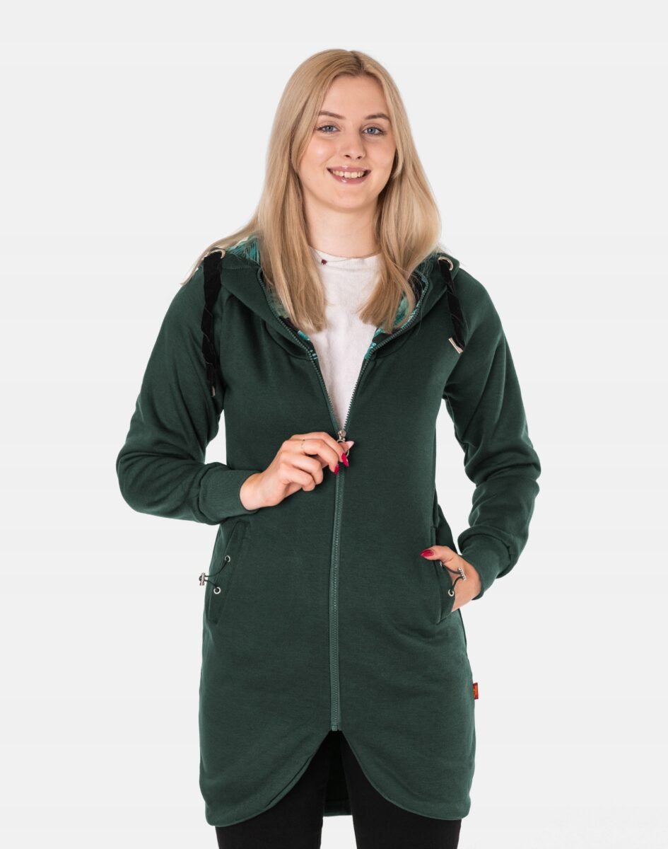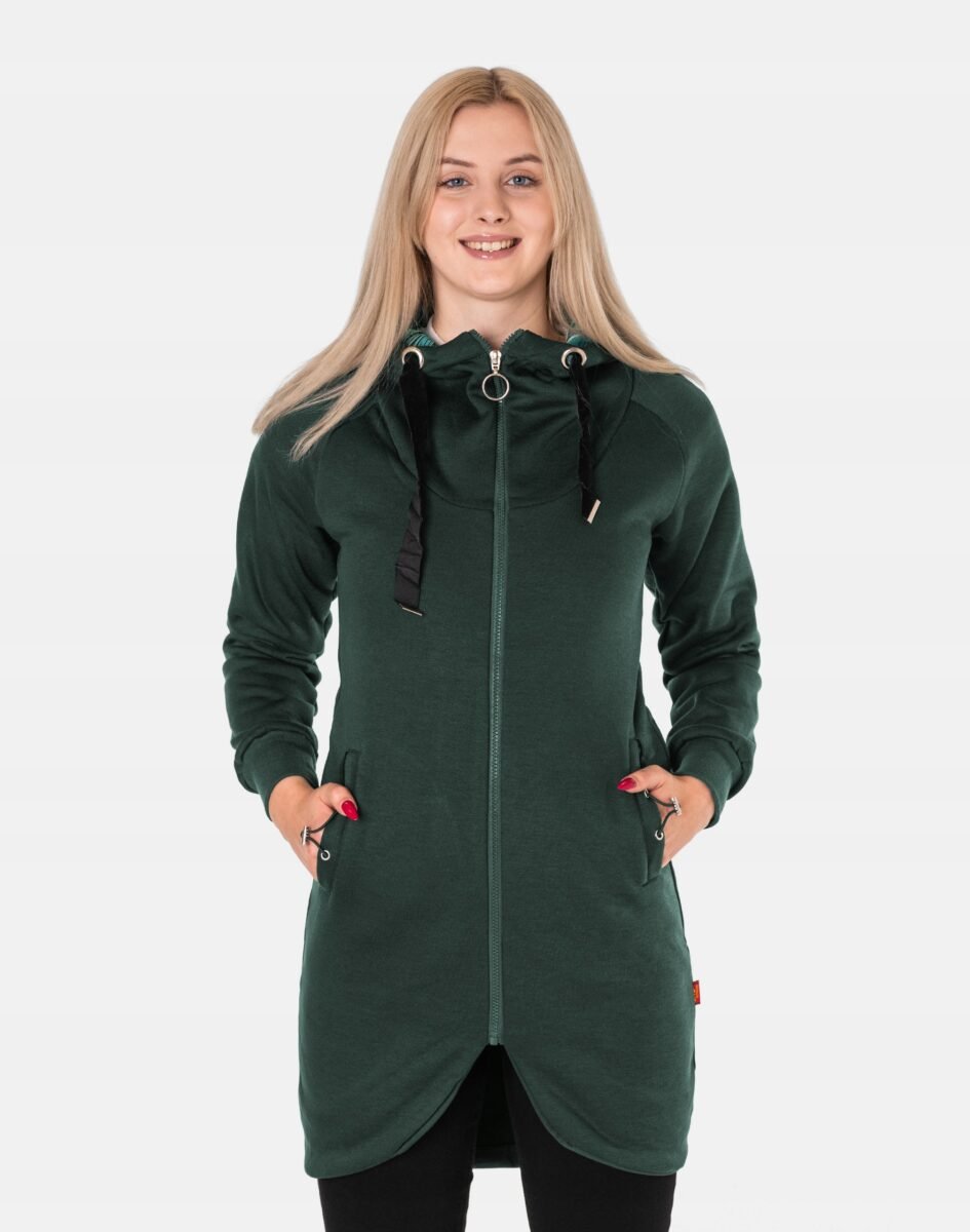 Długa bluza/tunika o kroju płaszcza przyda Ci się przez cały rok: w zimie możesz nosić ją pod płaszczem lub długą kurtką, a wiosną i jesienią przyda się jako samodzielne okrycie w chłodniejsze lub wietrzne dni. Doskonale komponuje się zarówno z legginsami, jak i jeansami. Niepodważalną zaletą bluzy/tuniki jest możliwość noszenia jej w rozmaitych warunkach pogodowych. Zapewnia ciepło podczas chłodnej i wietrznej pogody, a wraz ze wzrostem temperatury wystarczy rozpiąć zamek by poczuć się w niej komfortowo.