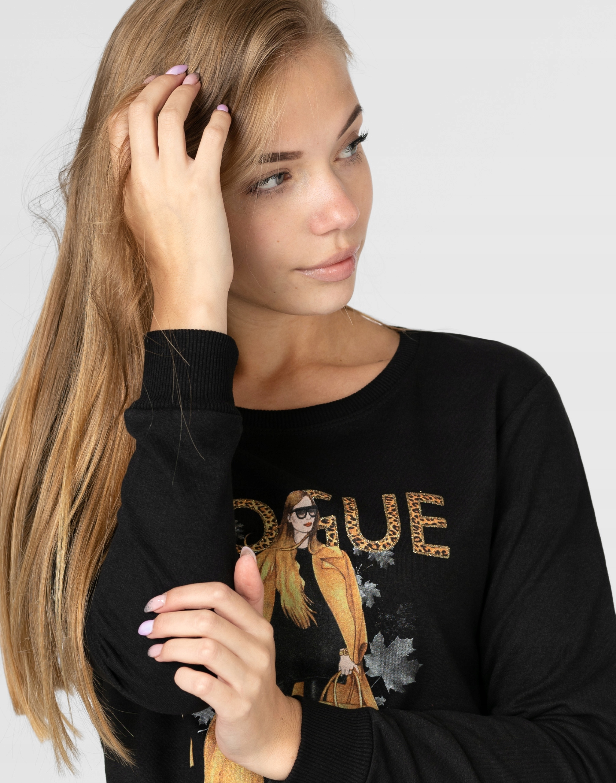 Długa sportowa bluza damska bawełniana z efektownym nadrukiem