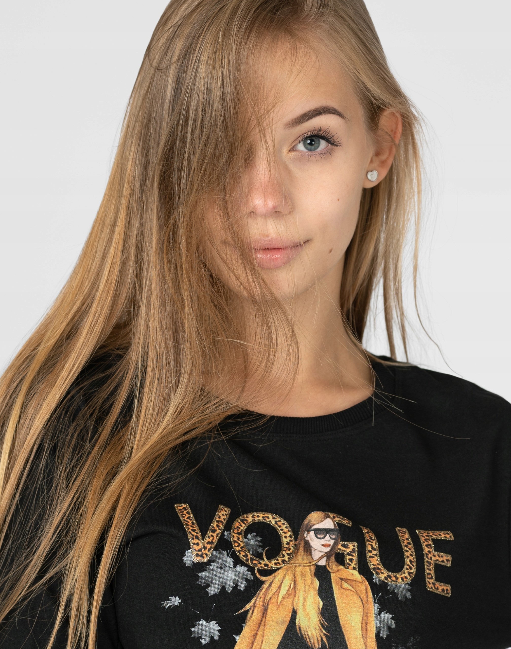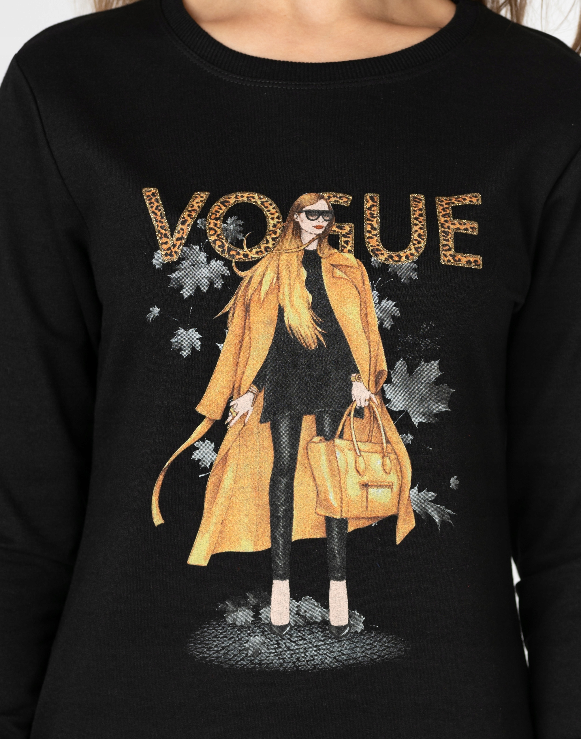 - Dekolt: okrągły wykończony wąskim ściągaczem