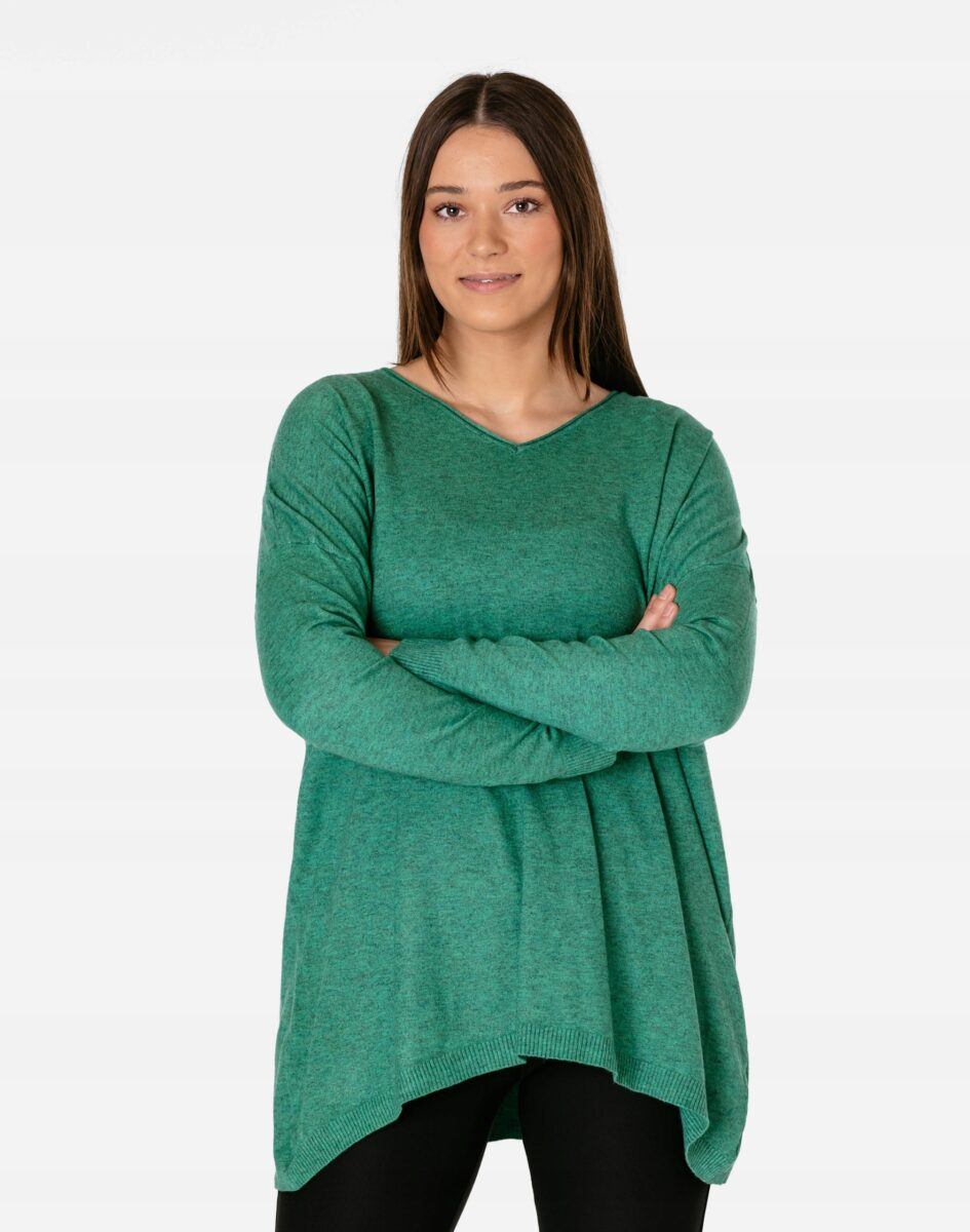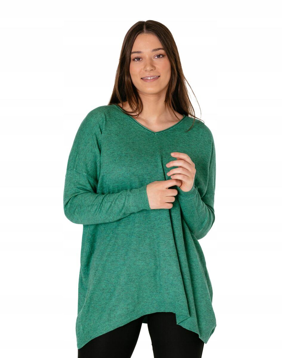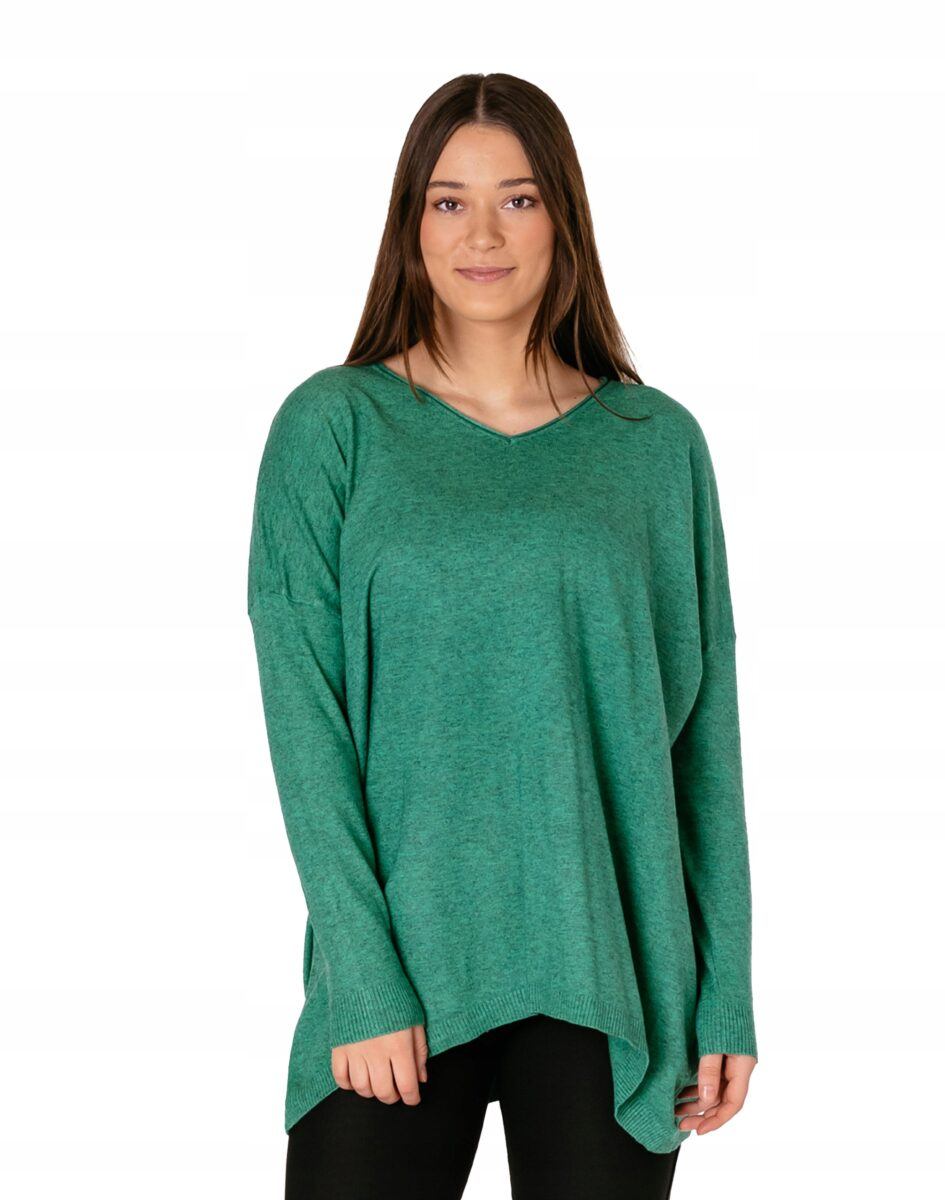 Efektowny długi sweterek, tunika o luźnym kroju, z asymetrycznym dołem, wyprodukowana z wysokiej jakości miękkiej, miłej w dotyku i przyjemnej dla ciała dzianiny wiskozowej średniej grubości zapewniającej maksymalną wygodę i komfort użytkowania. Sweterek/tunika oversize to idealny wybór dla każdej kobiety, bo niezależnie od typu figury, wieku, czy rozmiaru jaki nosisz zawsze będziesz w niej wyglądać elegancko, kobieco i atrakcyjnie. Klasyczna, wkładana przez głowę z długimi prostymi rękawami zakończonymi ściągaczem. Możesz ją nosić na wiele różnych sposobów: jako sukienkę do rajstop bądź tunikę do spodni czy legginsów, jak również jako ocieplenie na zwykłej koszulce z długim rękawem. Tworzy doskonałe zestawienie z wąskimi spodniami (rurki, cygaretki), dopasowanymi dżinsami i jest świetnym uzupełnieniem casualowych stylizacji. Idealna na „szaloną imprezę” jak również do codziennego użytku. Możliwości jej wykorzystanie są praktycznie nie ograniczone. Świetnie sprawdzi się w wielu różnych stylizacjach które zależeć będą tylko i wyłącznie od Twojej wyobraźni.