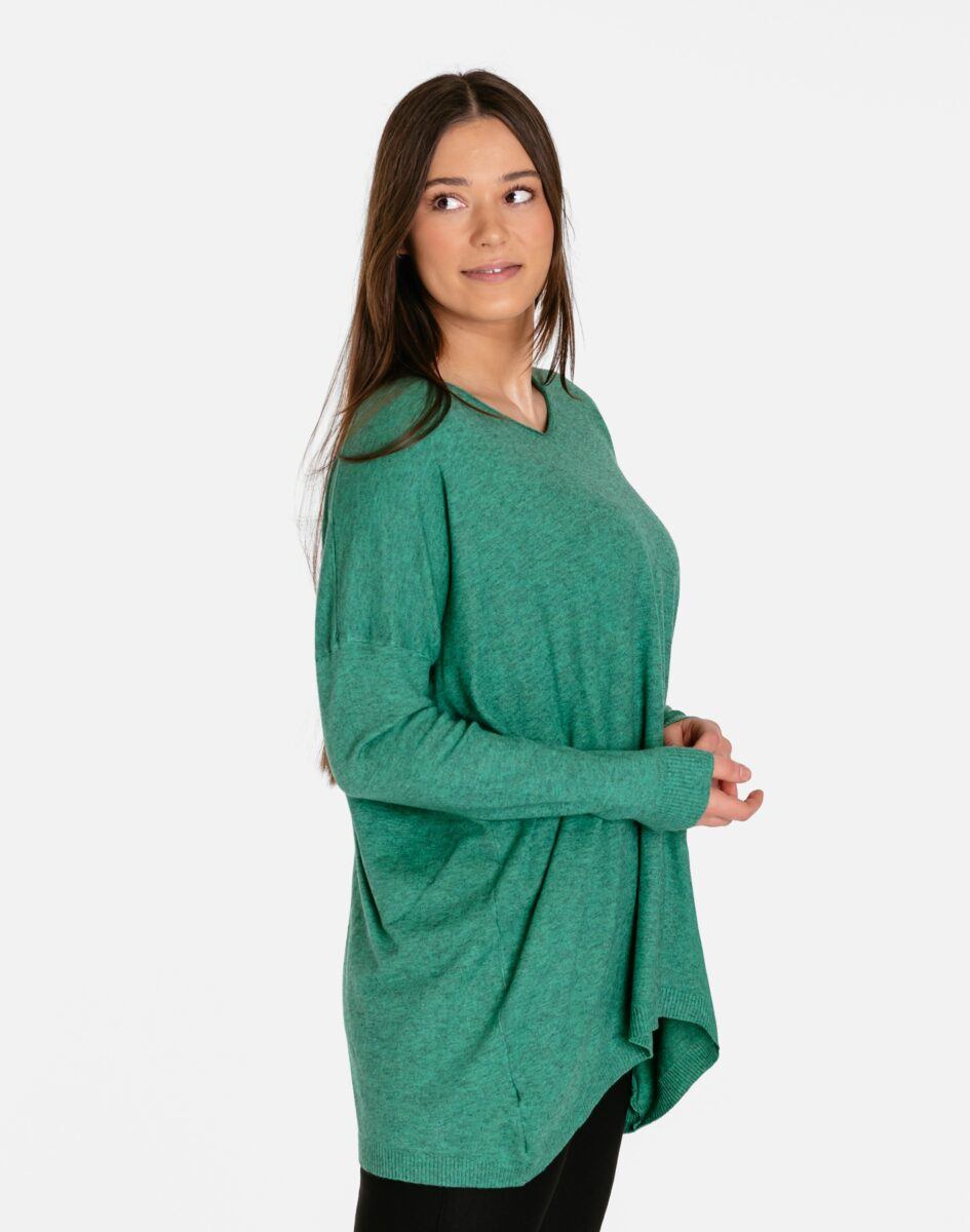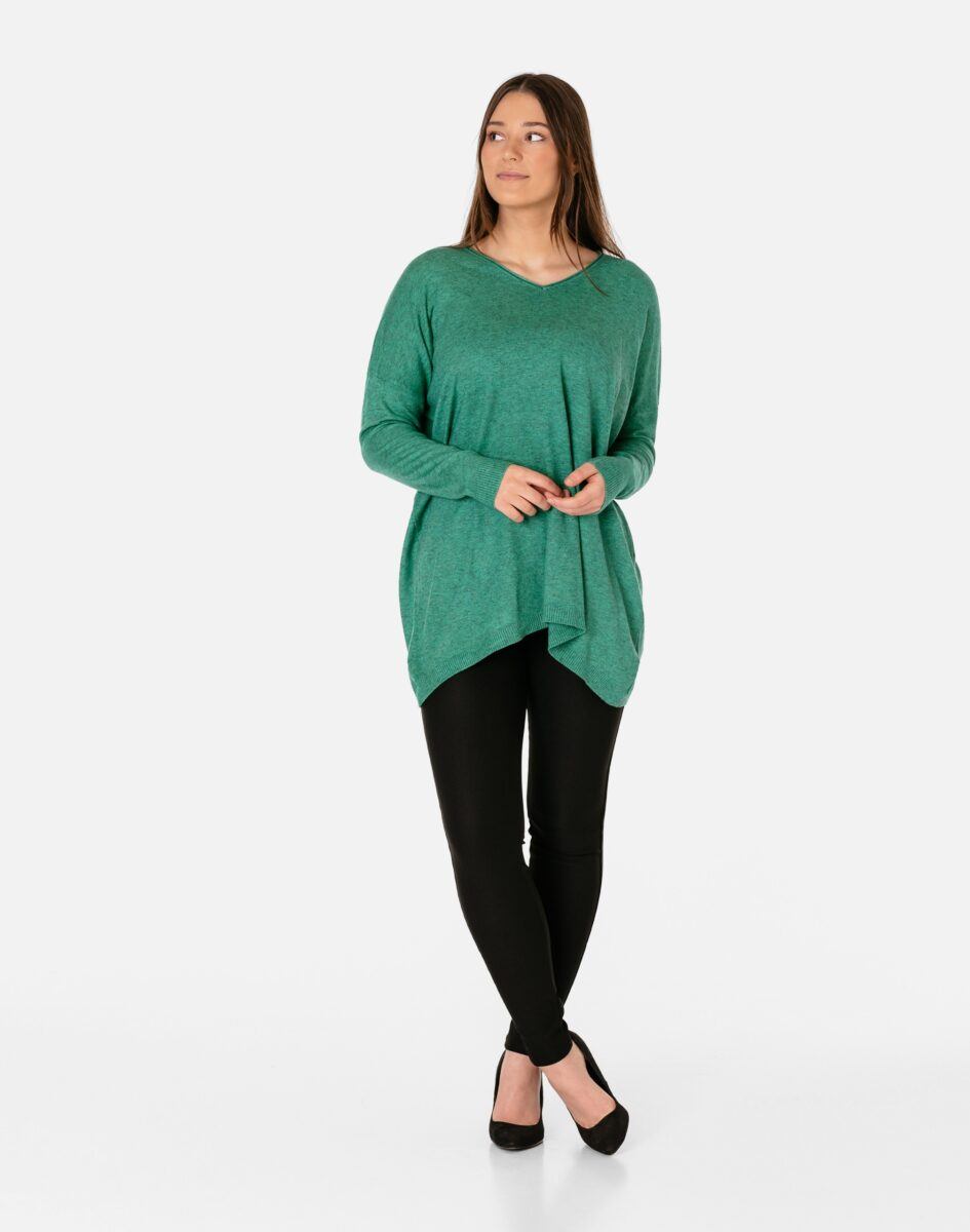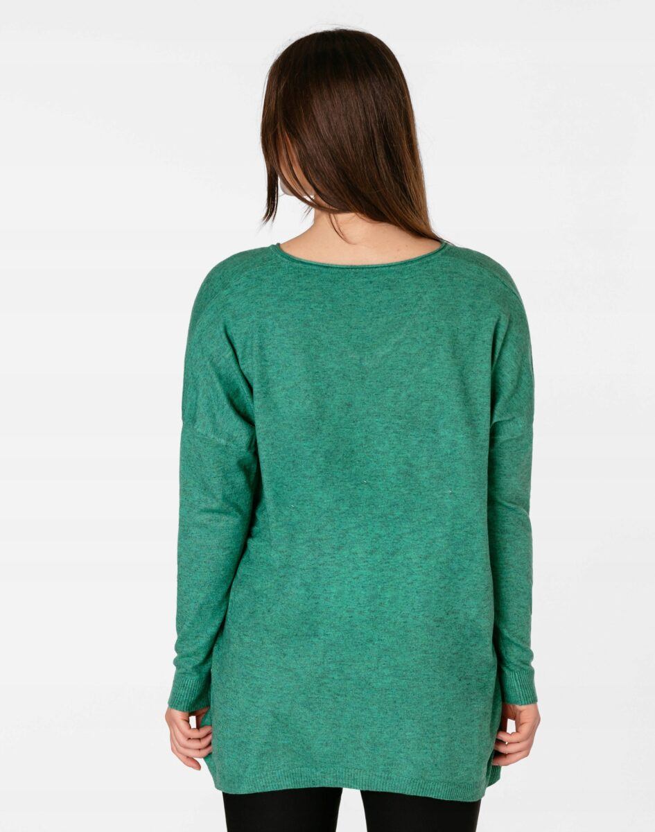 Efektowny długi sweterek, tunika o luźnym kroju, z asymetrycznym dołem, wyprodukowana z wysokiej jakości miękkiej, miłej w dotyku i przyjemnej dla ciała dzianiny wiskozowej średniej grubości zapewniającej maksymalną wygodę i komfort użytkowania. Sweterek/tunika oversize to idealny wybór dla każdej kobiety, bo niezależnie od typu figury, wieku, czy rozmiaru jaki nosisz zawsze będziesz w niej wyglądać elegancko, kobieco i atrakcyjnie. Klasyczna, wkładana przez głowę z długimi prostymi rękawami zakończonymi ściągaczem. Możesz ją nosić na wiele różnych sposobów: jako sukienkę do rajstop bądź tunikę do spodni czy legginsów, jak również jako ocieplenie na zwykłej koszulce z długim rękawem. Tworzy doskonałe zestawienie z wąskimi spodniami (rurki, cygaretki), dopasowanymi dżinsami i jest świetnym uzupełnieniem casualowych stylizacji. Idealna na „szaloną imprezę” jak również do codziennego użytku. Możliwości jej wykorzystanie są praktycznie nie ograniczone. Świetnie sprawdzi się w wielu różnych stylizacjach które zależeć będą tylko i wyłącznie od Twojej wyobraźni.
