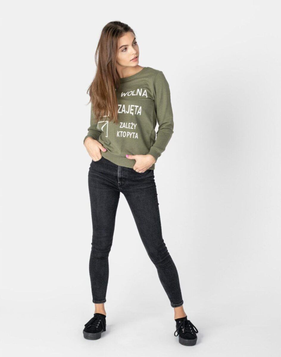 Sportowa bluza damska firmy ETARG wyprodukowana z dzianiny 100% bawełnianej średniej grubości zapewniającej maksymalną wygodę i komfort użytkowania. Naturalna bawełna gwarantuje izolację cieplną, wchłanianie potu i oddychanie skóry, a sam materiał odznacza się dużą miękkością. Bluza wkładana jest przez głowę i ozdobiona z przodu zabawnym nadrukiem mającym wielką moc rozweselania. Dół bluzy oraz rękawy wykończone szerokim elastycznym ściągaczem. Możesz w niej chodzić na co dzień. Idealnie nadaje się również do uprawiania różnych dyscyplin sportu i rekreacji. Będzie świetnym uzupełnieniem Twojej garderoby jeśli jesteś miłośniczką stylu casual lub sportswear.