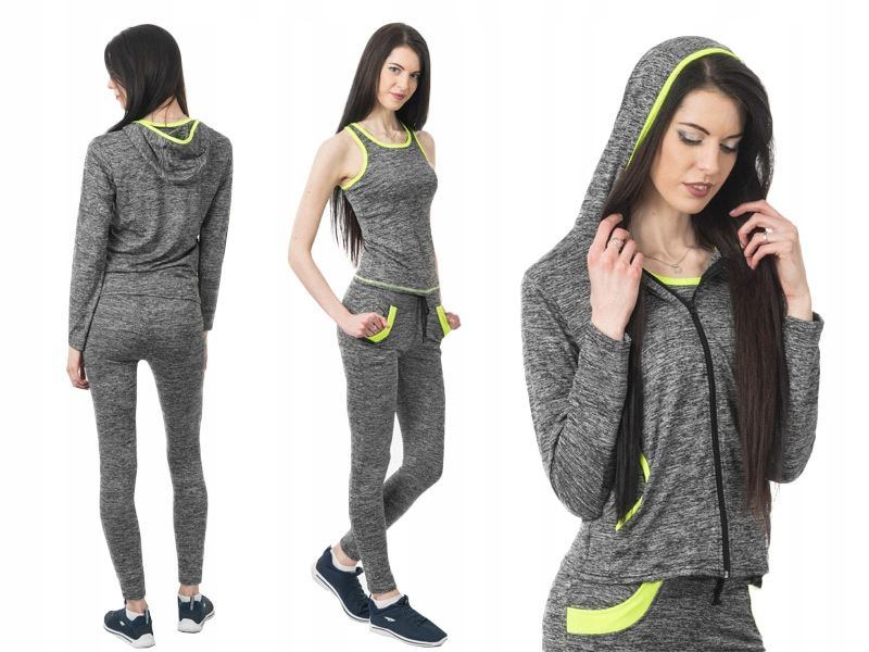 3-Częściowy Komplet Sportowy Damski Koszulka Bokserka + Spodnie Legginsy + Bluza z Kapturem