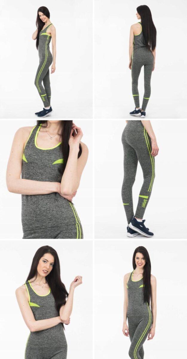 Niezależnie czy uprawiasz sport profesjonalnie, czy w zaciszu czterech ścian, podczas treningu powinnaś nosić odzież do tego przeznaczoną. 2-częściowy sportowy komplet damski to wygodny i bardo lubiany strój na siłownie, fitness, aerobik, jogę, pilates, jogging itp. Zastosowany materiał o gramaturze 240g/m2 jest oddychający, odporny na promieniowanie UV, elastyczny, rozciągliwy w czterech kierunkach, idealnie dopasowuje się i jest bardzo komfortowy. Trwałe i elastyczne wykończenie koszulki i spodni (użycie do produkcji elastycznych nici) gwarantuje komfort i wygodę ich użytkownikowi w każdych warunkach. Sylwetka użytkownika staje się w nim optycznie smuklejsza i nabiera dynamicznego sportowego wyglądu.