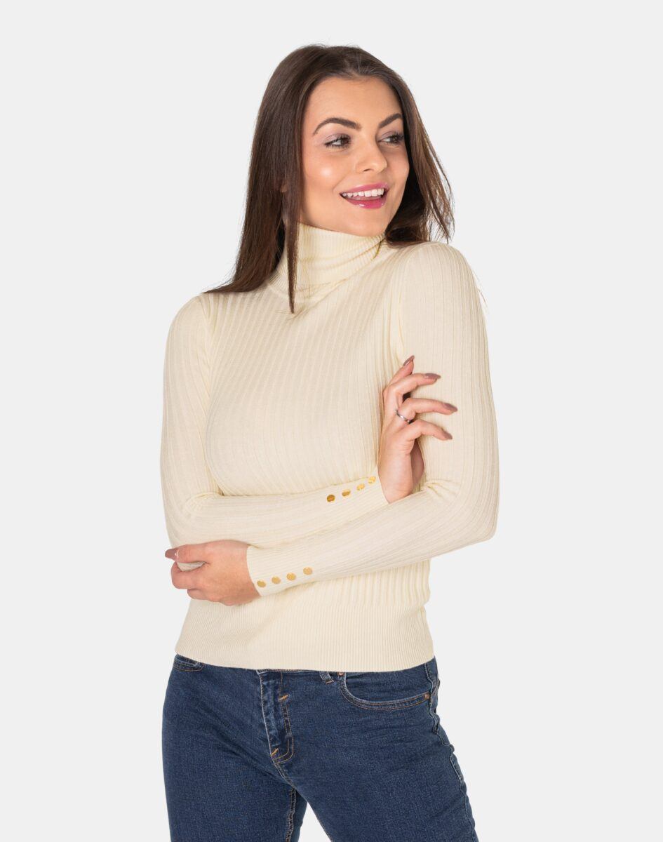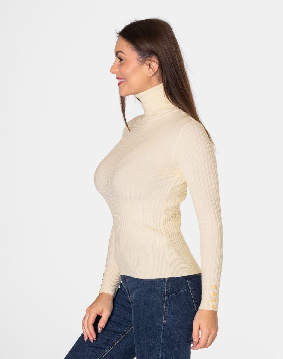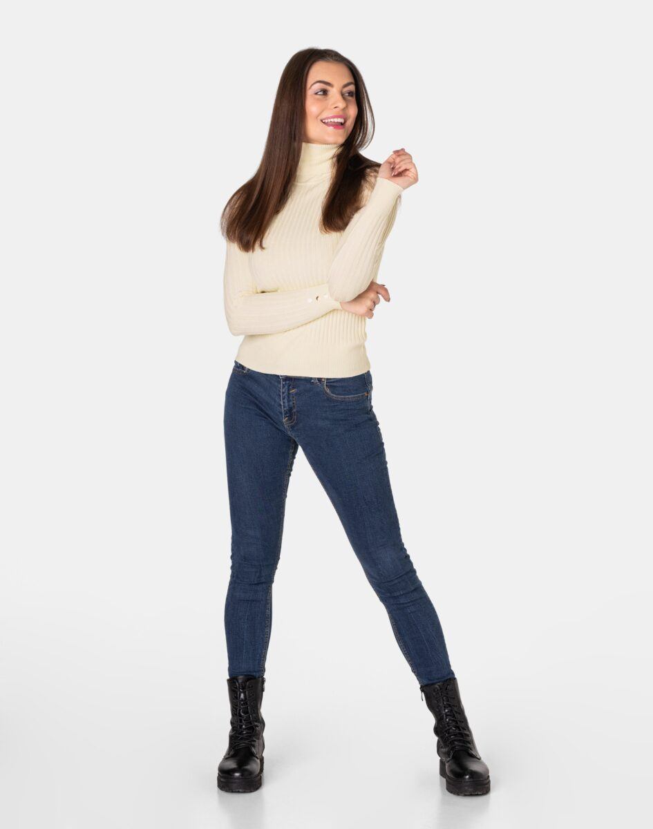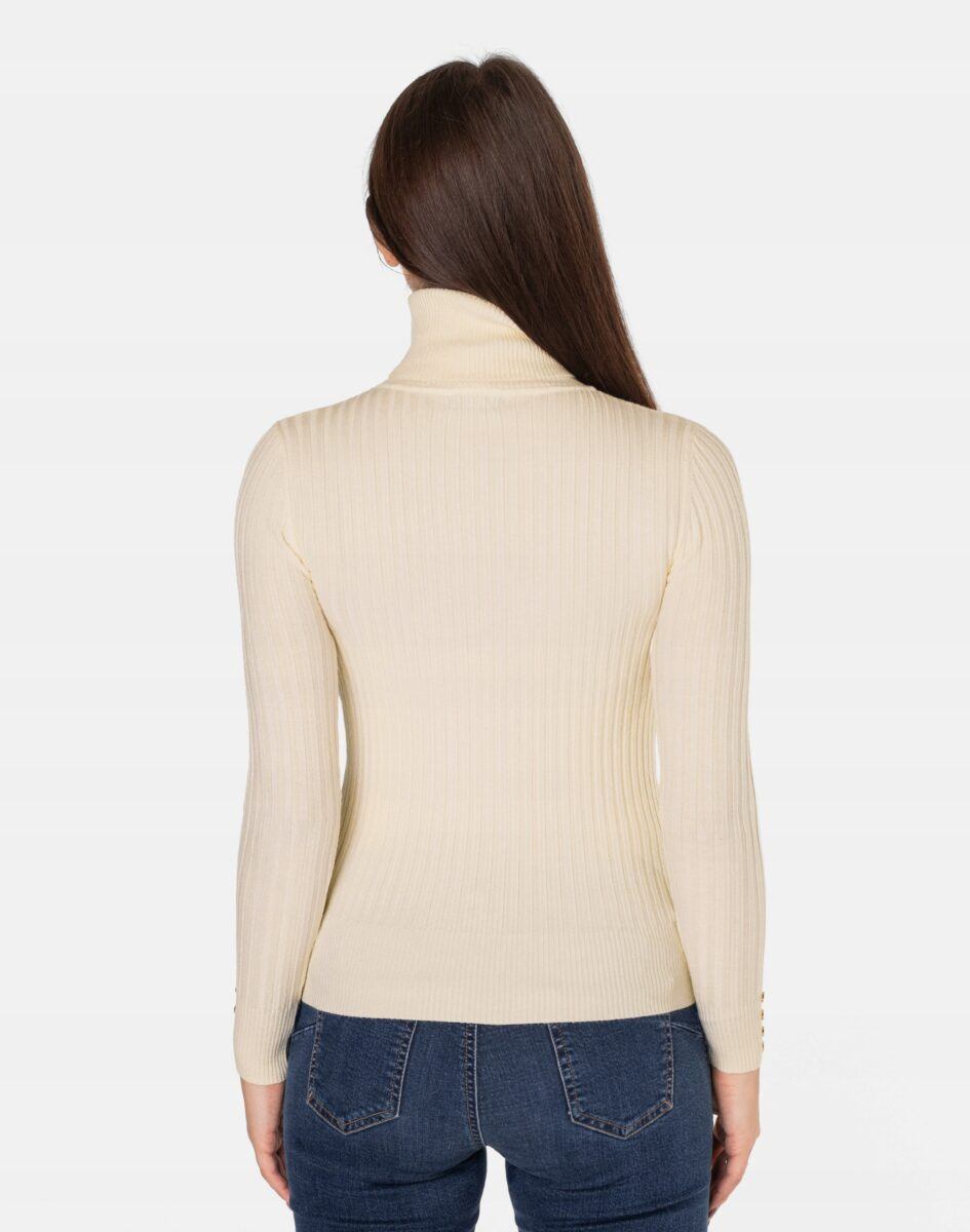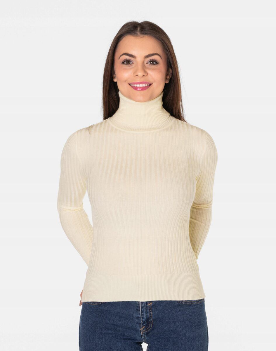 Elegancki i ciepły sweterek golf high-neck damski z najnowszej kolekcji jesień/zima, to ikona klasycznego damskiego stylu łącząca w sobie walory estetyczne z funkcjonalnością. Wyprodukowany z wysokogatunkowej dzianiny swetrowej o drobnym splocie zapewniającej wysoki komfort noszenia i swobodę ruchów. Dzięki zawartości wiskozy sweterek jest przewiewny, przyjazny dla alergików i łatwy do utrzymania w czystości. Niewielki dodatek nylonu zapewnia pełną swobodę ruchów, wygodę noszenia oraz stabilność rozmiarów i koloru po wielokrotnym praniu przez co nigdy nie będzie rozciągnięty i zawsze zachowa swój pierwotny fason. Model wygodny i uniwersalny, doskonale sprawdzi się zarówno w formalnych jak i mniej formalnych stylizacjach. Dzięki swojej prostocie bardzo elegancki.