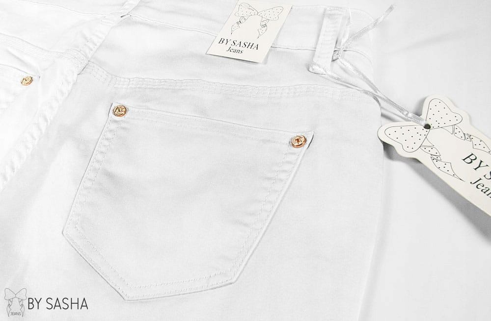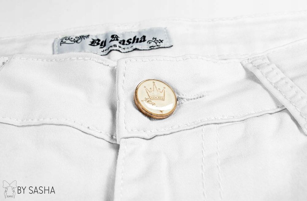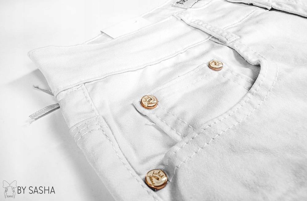 Oferowane przez nas spodnie uszyte są z wysokiej jakości cienkiej tkaniny jeansowej typu „White Denim” z domieszką lycry (elastan), która odznacza się wysoką elastycznością co gwarantuje doskonałe dopasowanie do każdej figury i że spodnie nie będą się deformować i odkształcać nawet po długim użytkowaniu. Świetnie przylegają do ciała a jednocześnie pozwalają na pełną swobodę ruchów co daje komfort przy siadaniu i zapewnia ogromny komfort noszenia. Możesz je śmiało łączyć zarówno ze szpilkami (idealnie wydłużają kobiece nogi), jak i obuwiem sportowym. Dobrze wyglądają również z podwiniętymi nogawkami. Niepozorne podwinięcie nogawek spodni nadaje stylizacjom ciekawej nonszalancji i zadziorności.