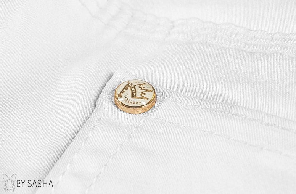 Spodnie damskie model S922 to klasyczne, bardzo wygodne rurki damskie w eleganckim białym kolorze z wąskimi nogawkami o wyszczuplającym optycznie kobiecą sylwetkę fasonie i wyższym stanie. Zapinane są na kryty zamek błyskawiczny i metalowy guzik sygnowany logiem firmy. Z przodu mają dwie kieszonki zaokrąglone oraz mniejszą kieszonkę tzw. bilonówkę, a na tyle klasyczne kieszenie naszywane jak w typowych spodniach jeansowych. W pasie szlufki umożliwiające stylizacje z paskiem. Najbardziej podatne na uszkodzenia miejsca wzmocnione są dodatkowymi przeszyciami oraz ozdobnymi nitami.