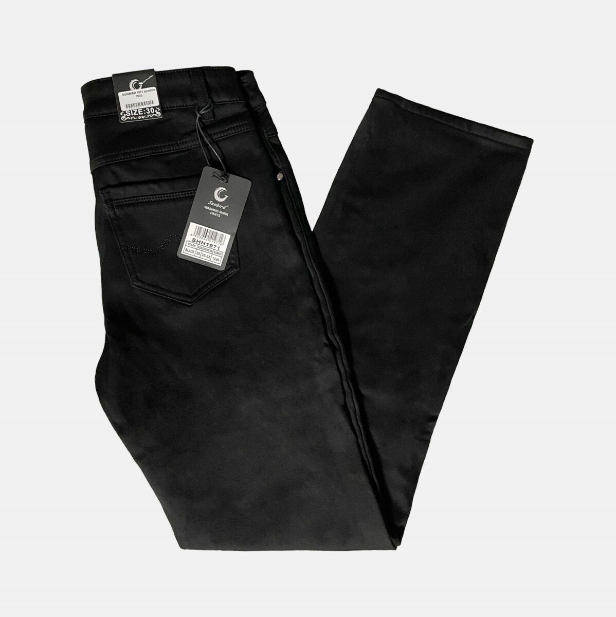 Ciepłe spodnie jeansowe damskie w kolorze czarnym „Super Black” na jesień/zimę ocieplone od wewnętrznej strony polarem, z klasycznymi prostymi nogawkami i wyszczuplającym optycznie kobiecą sylwetkę fasonie i wyższym stanie. Zapinane są na kryty zamek błyskawiczny i metalowy guzik sygnowany logiem firmy. Z przodu mają dwie kieszonki zaokrąglone oraz mniejszą kieszonkę tzw. bilonówkę, a na tyle klasyczne kieszenie naszywane jak w typowych spodniach jeansowych. W pasie szlufki umożliwiające stylizacje z paskiem. Najbardziej podatne na uszkodzenia miejsca wzmocnione są dodatkowymi przeszyciami oraz ozdobnymi nitami. Uszyte z mocnego denimu z niewielkim dodatkiem lycry (elastan) dzięki czemu spodnie są bardziej elastyczne co pozwala na pełną swobodę ruchów, daje komfort przy siadaniu i zapewnia ogromny komfort noszenia.