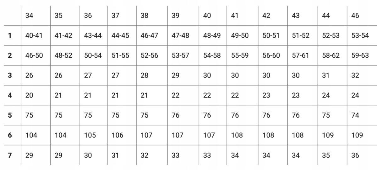 Obwód pasa: 94-96 cm (Sprawdź pozostałe wymiary w tabeli)