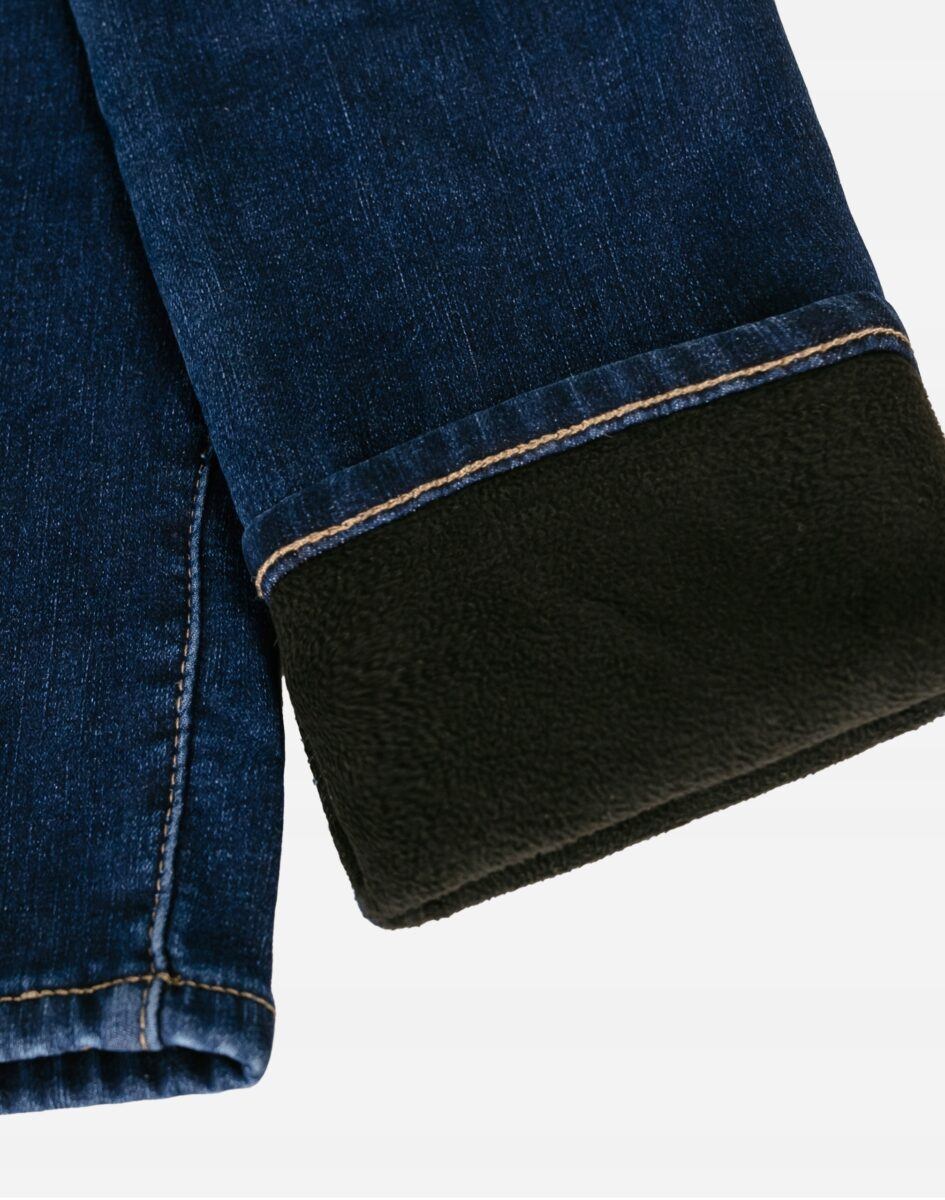 - Struktura/rodzaj materiału: Denim Jeans z dodatkiem streczu ocieplony od wewnętrznej strony polarem, gładki, elastyczny, matowy